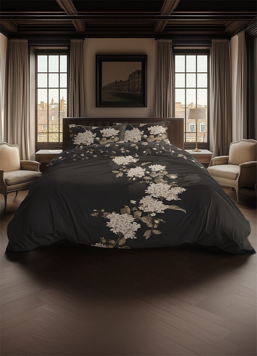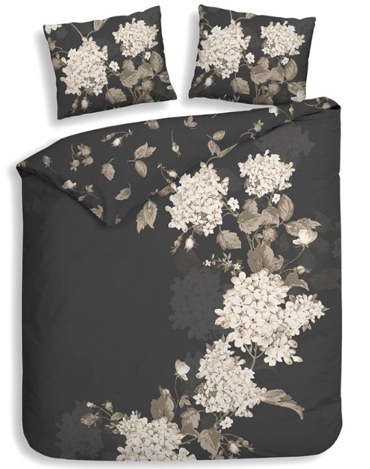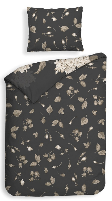 Het Heckett & Lane Ivy Antraciet dekbedovertrek heeft een stijlvol en verfijnd bloemen dessin met sierlijke bloemtakken in zachte beige- en natuurtinten op een diepe antraciete achtergrond. Deze combinatie zorgt voor een luxe en warme uitstraling die perfect past in een chique en moderne slaapkamer.