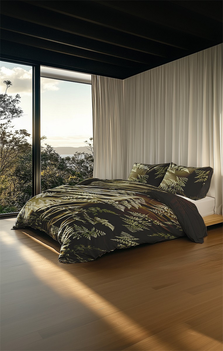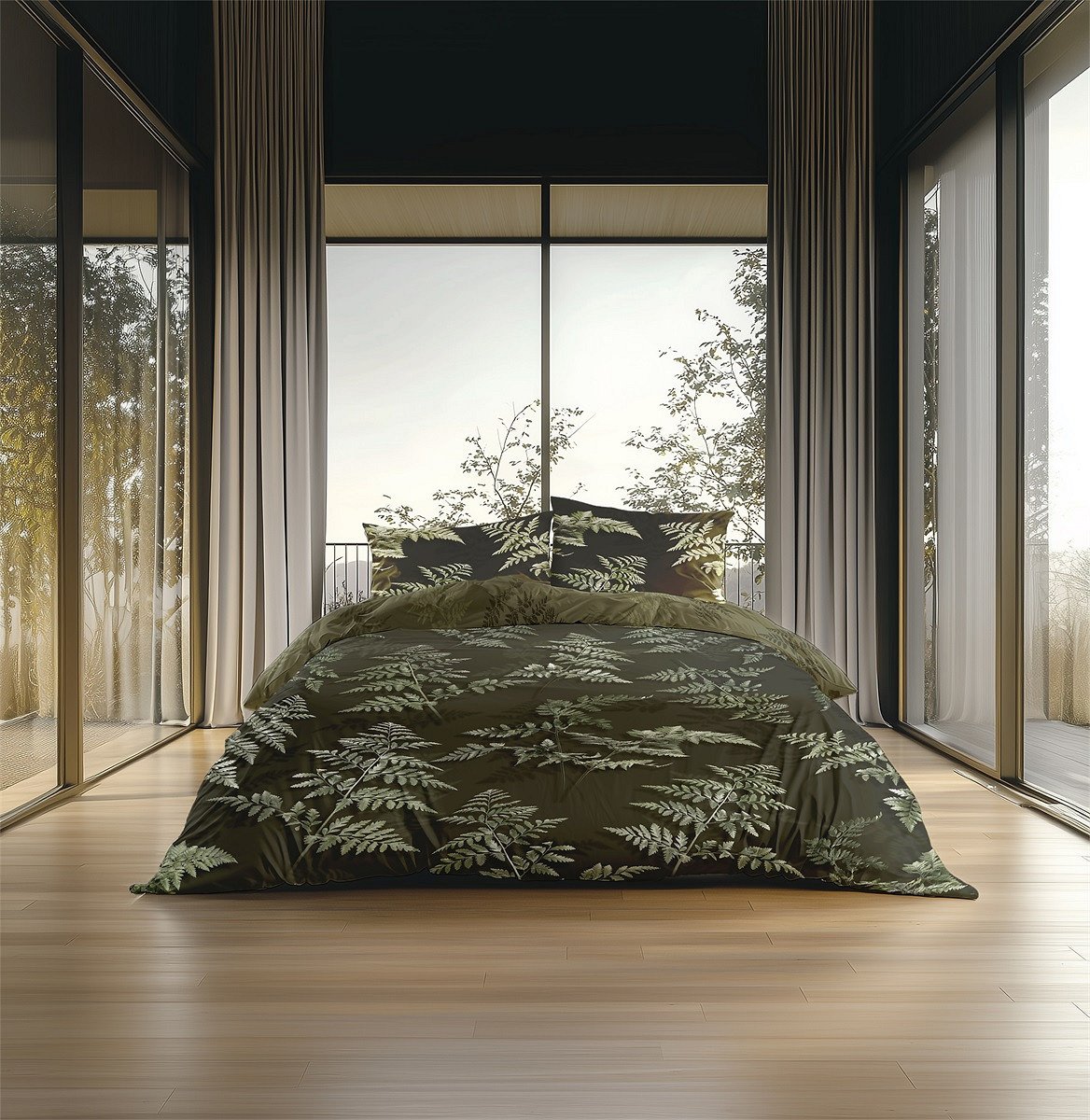 Het varenblad dessin in diepe groentinten geeft het bed een stijlvolle en natuurlijke luxe uitstraling.