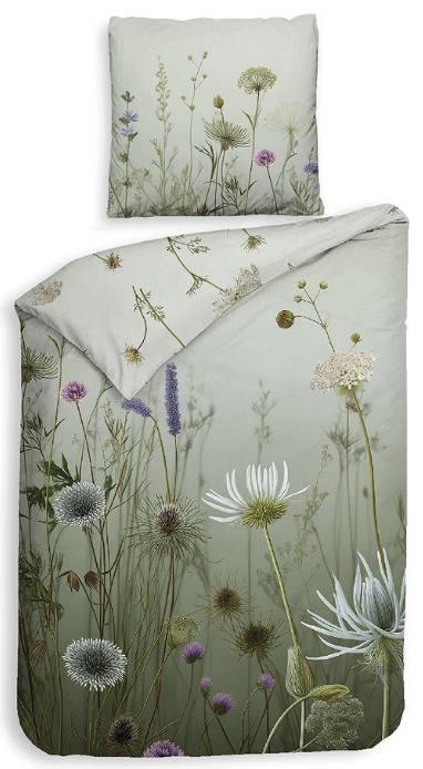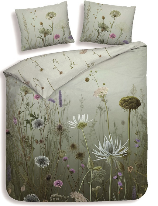 Het Heckett & Lane Tane Multi dekbedovertrek heeft een artistiek en rustgevend ontwerp met sierlijke veldbloemen, fijne grassen en subtiele natuurtinten. De combinatie van zachte groenen, lichte bloemen en een dromerige achtergrond zorgt voor een serene en elegante uitstraling in de slaapkamer.