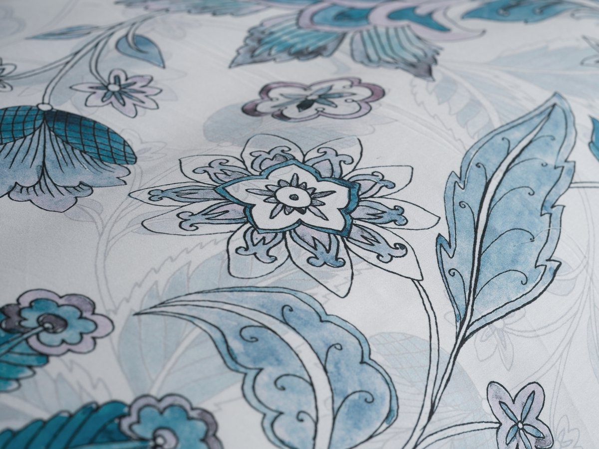 Het dekbedovertrek is vervaardigd uit 100% katoen/satijn en is een ware kunstwerk voor op je bed. Bij het weven zijn garen van extra langvezelig katoen gebruikt. Dankzij de speciale weefstructuur heeft de stof een hogere draaddichtheid en krijgt het dekbedovertrek een subtiele glans en is lekker zacht en glad om op te liggen. Het fijne materiaal zorgt voor schitterende kleuren en een fijne oppervlaktetextuur.