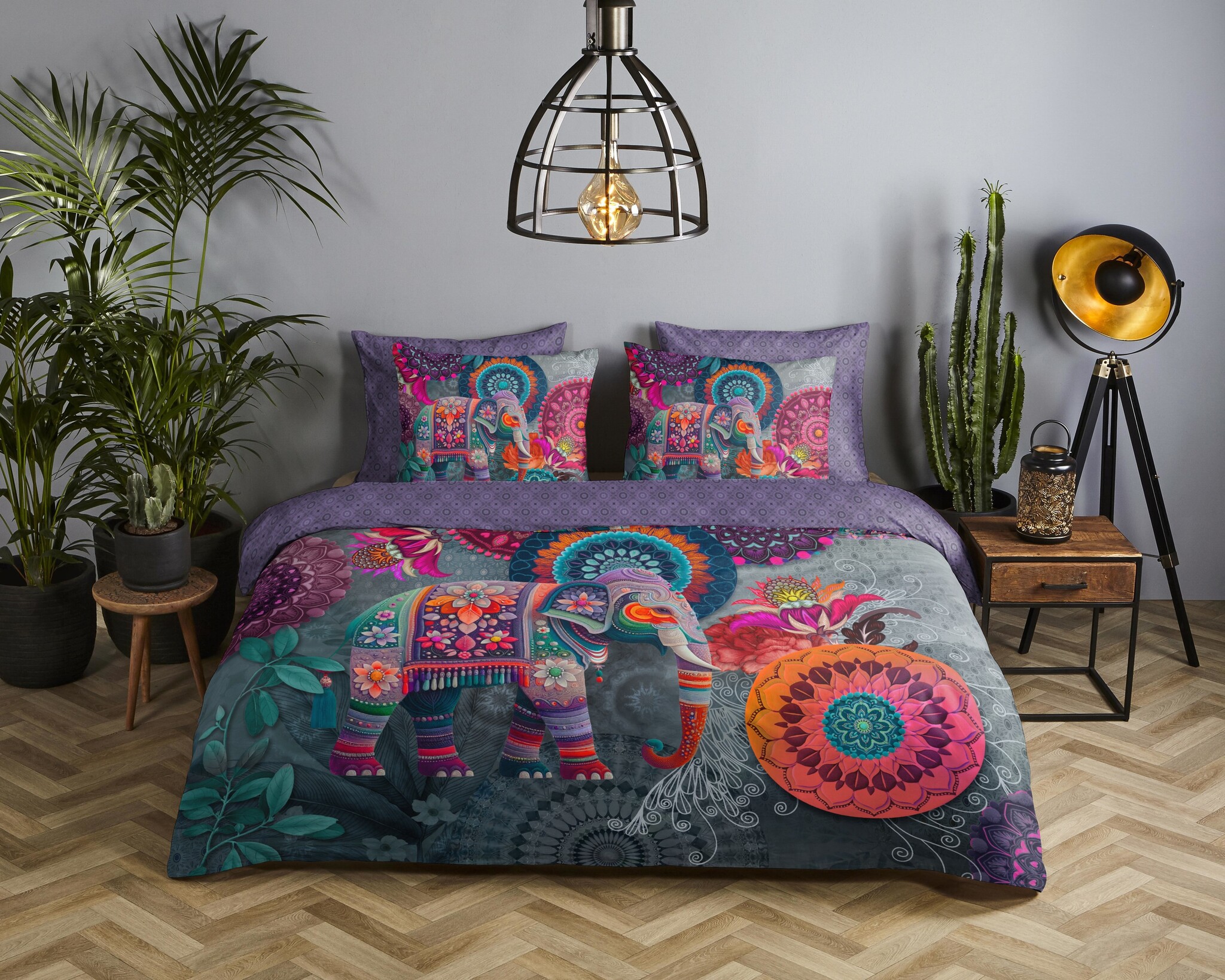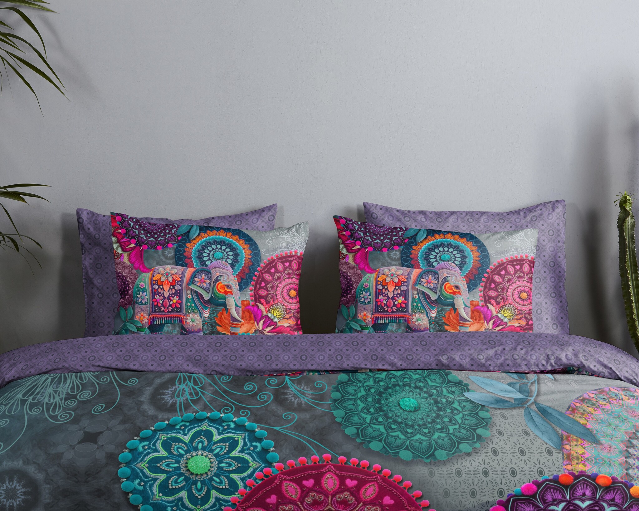 HIP Abhay Paars – Mandala & Olifant Katoensatijnen Dekbedovertrek