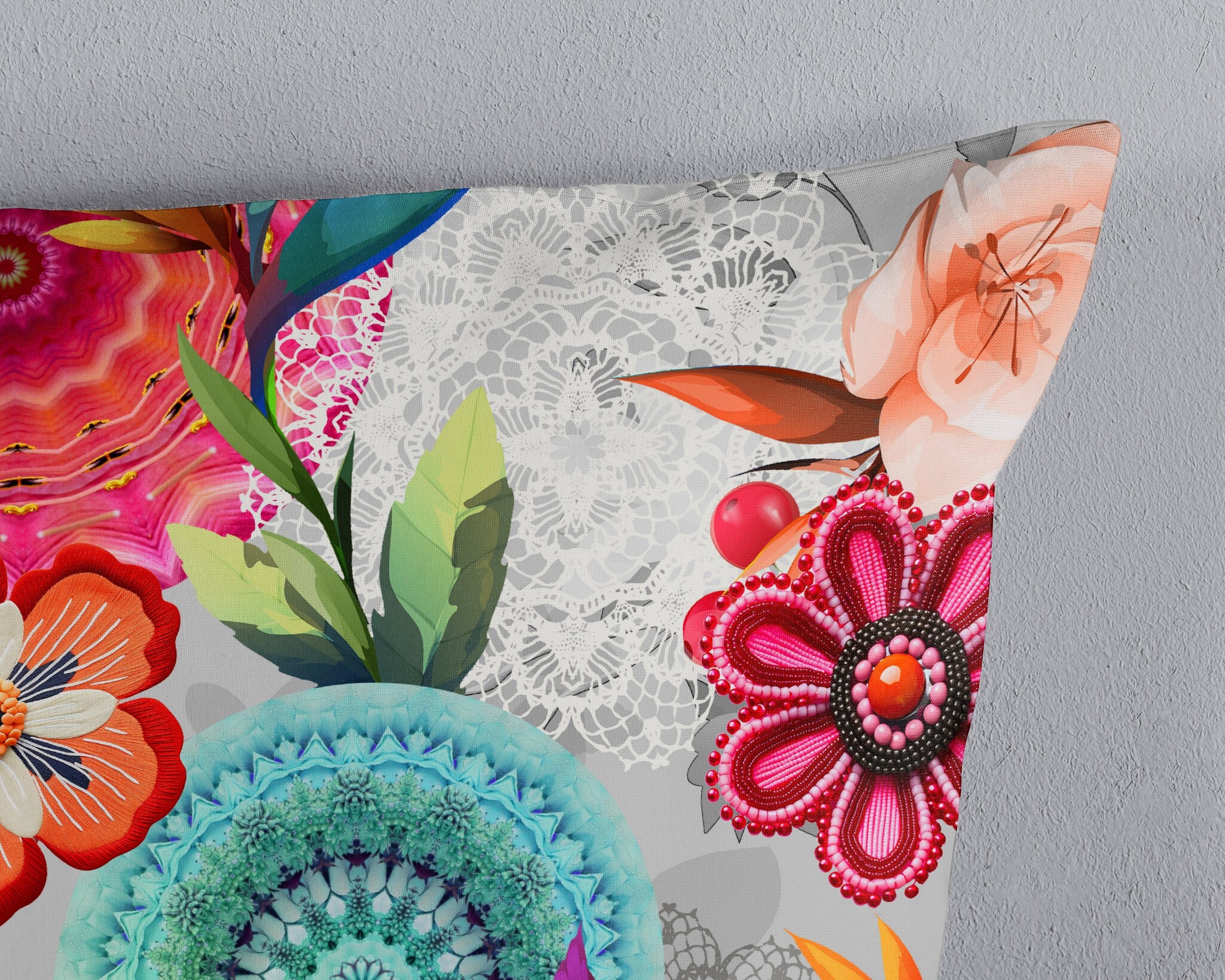 De grote fantasiebloemen en mandala’s maken dit overtrek een echte blikvanger met een artistieke en levendige uitstraling.