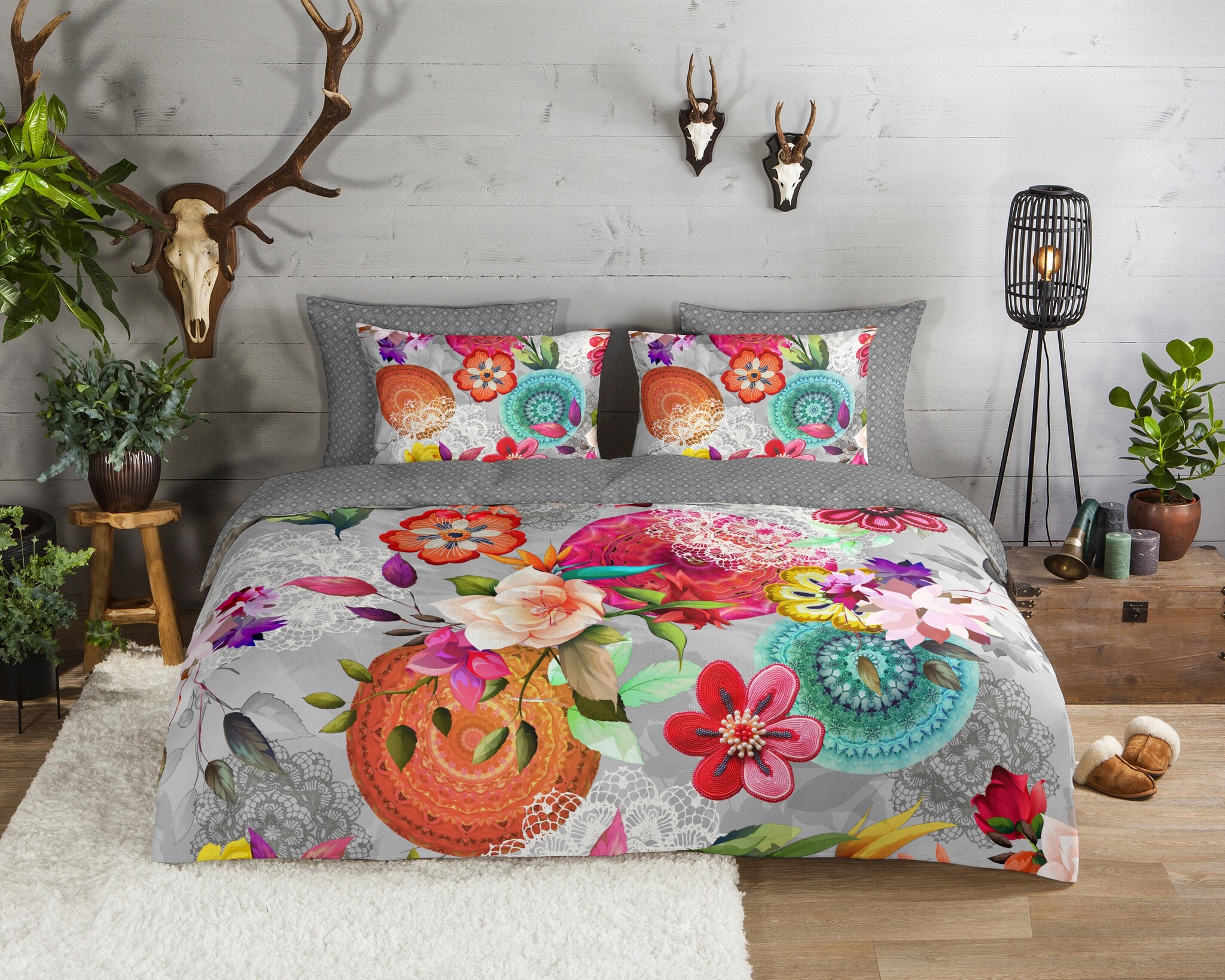 HIP Dekbedovertrek Isarea Multi – Kleurrijk Bloemen Dessin met Mandala Details