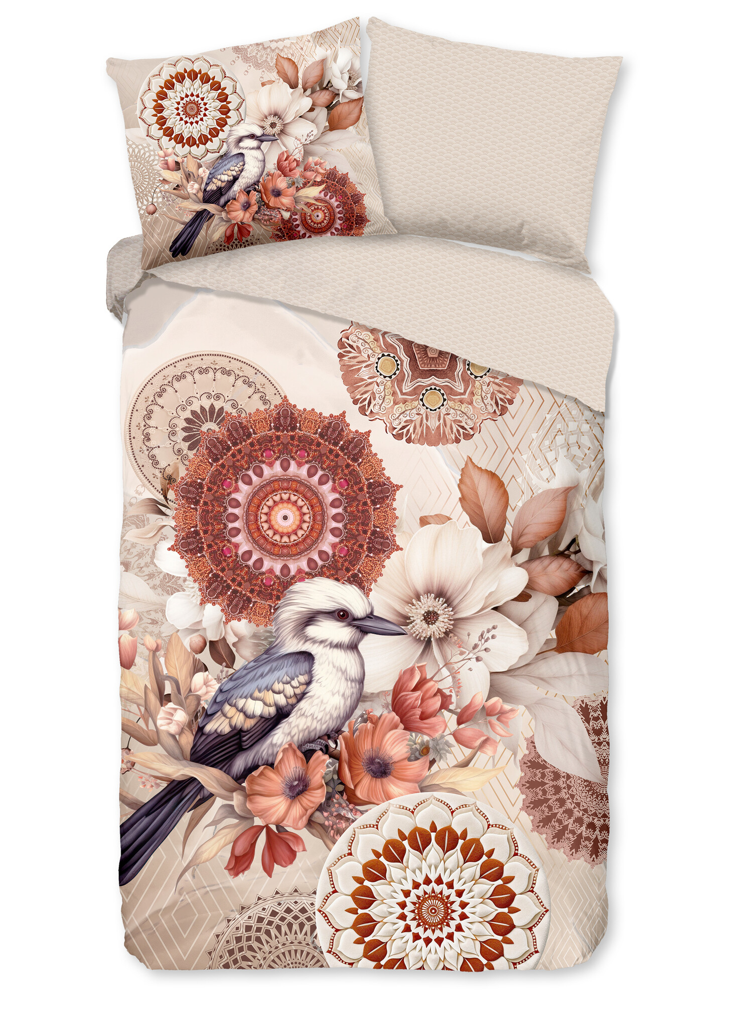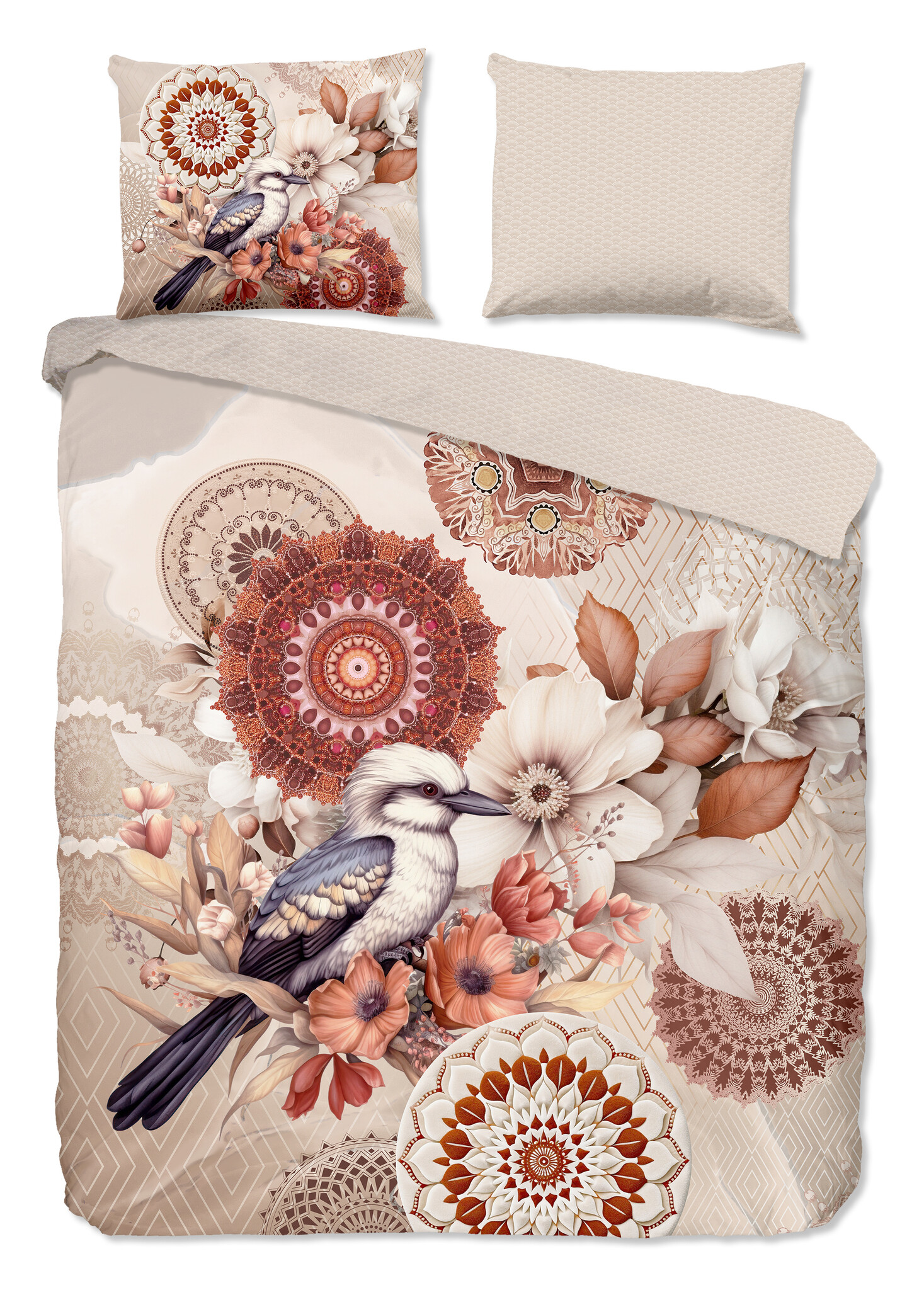 HIP Dekbedovertrek Luigio Zand – Vogel en Mandala Dessin in Warme Zandtinten