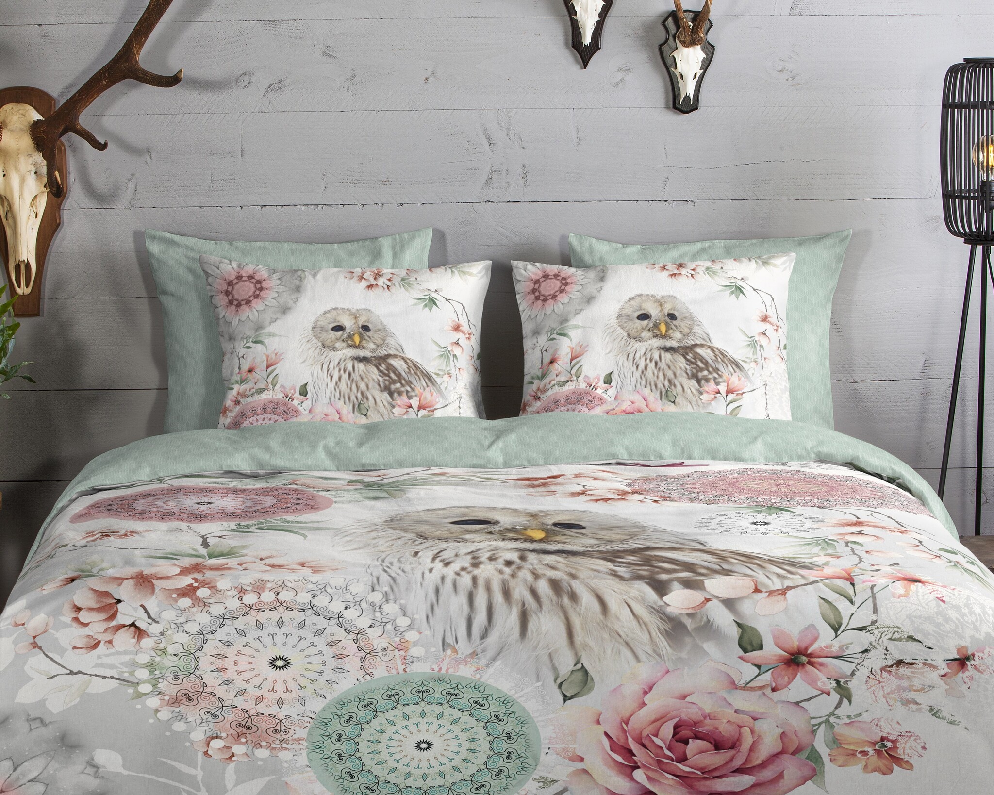 De uil vormt het middelpunt van dit elegante dieren dekbedovertrek, terwijl de bloesems en fijne patronen zorgen voor een romantische en natuurlijke sfeer. Het ontwerp heeft de charme van een sfeervol uilen dekbedovertrek met een rustige, harmonieuze uitstraling.