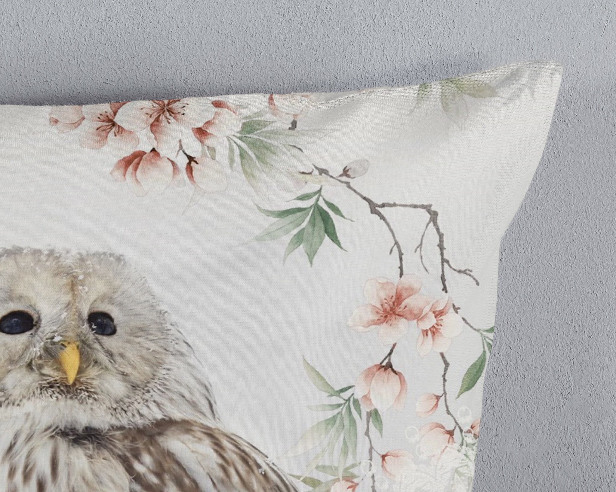 De gedetailleerde uil geeft het overtrek een rustige maar karaktervolle uitstraling.