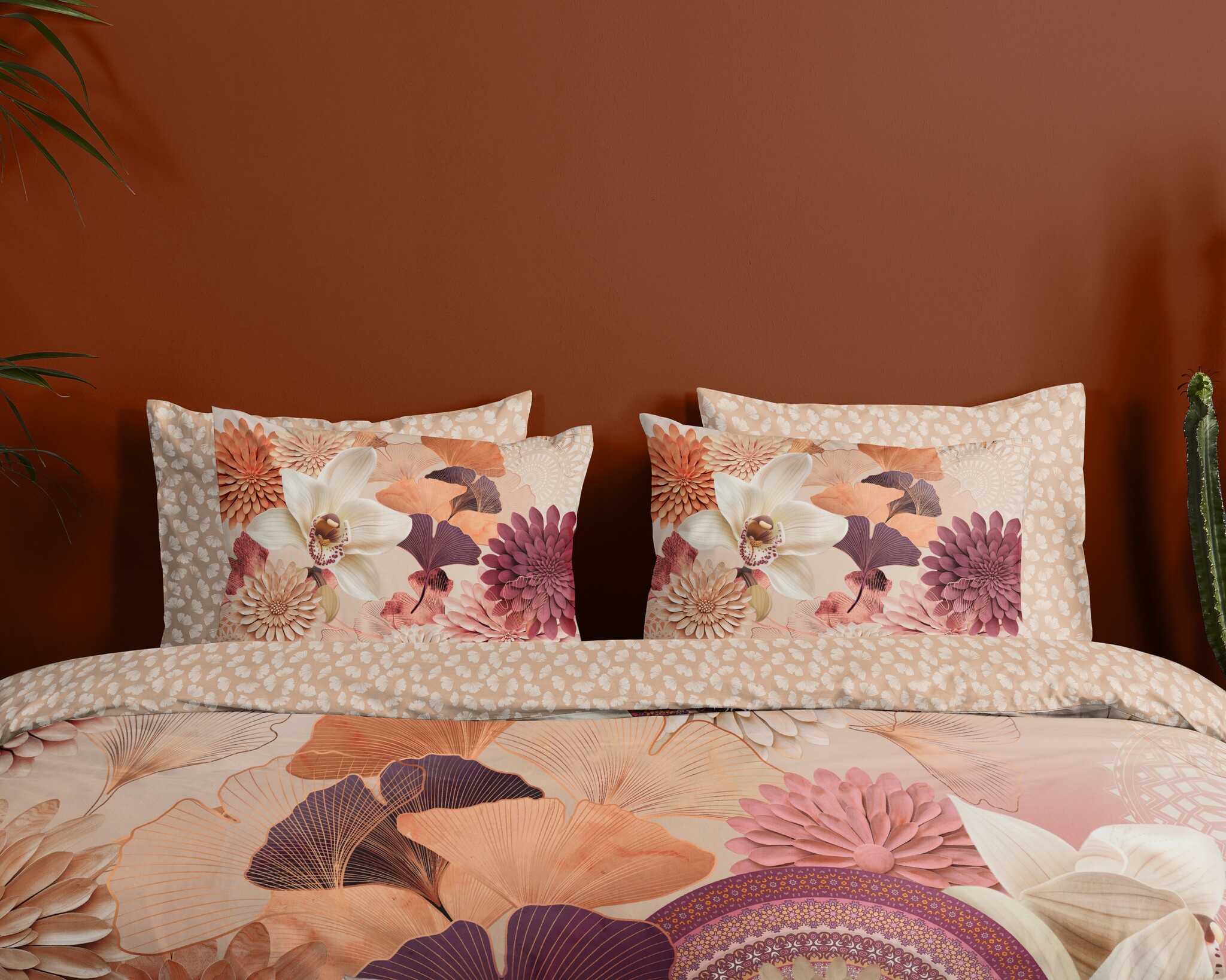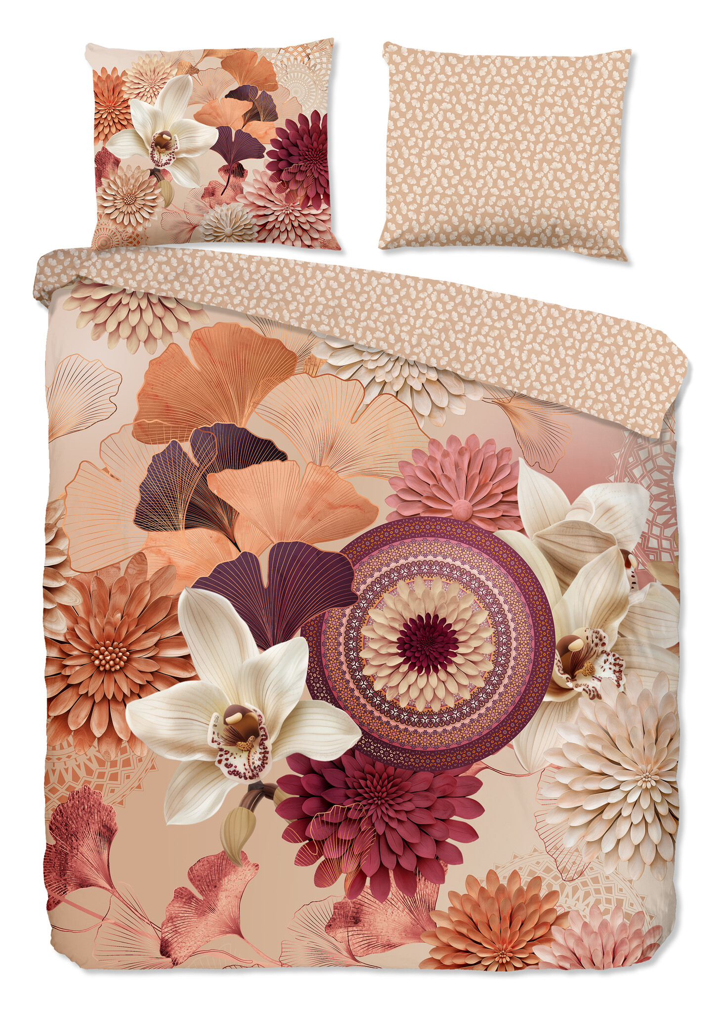 IP Dekbedovertrek Quente Zand – Warme Bloemenprint in Zachte Aardetinten van Katoensatijn