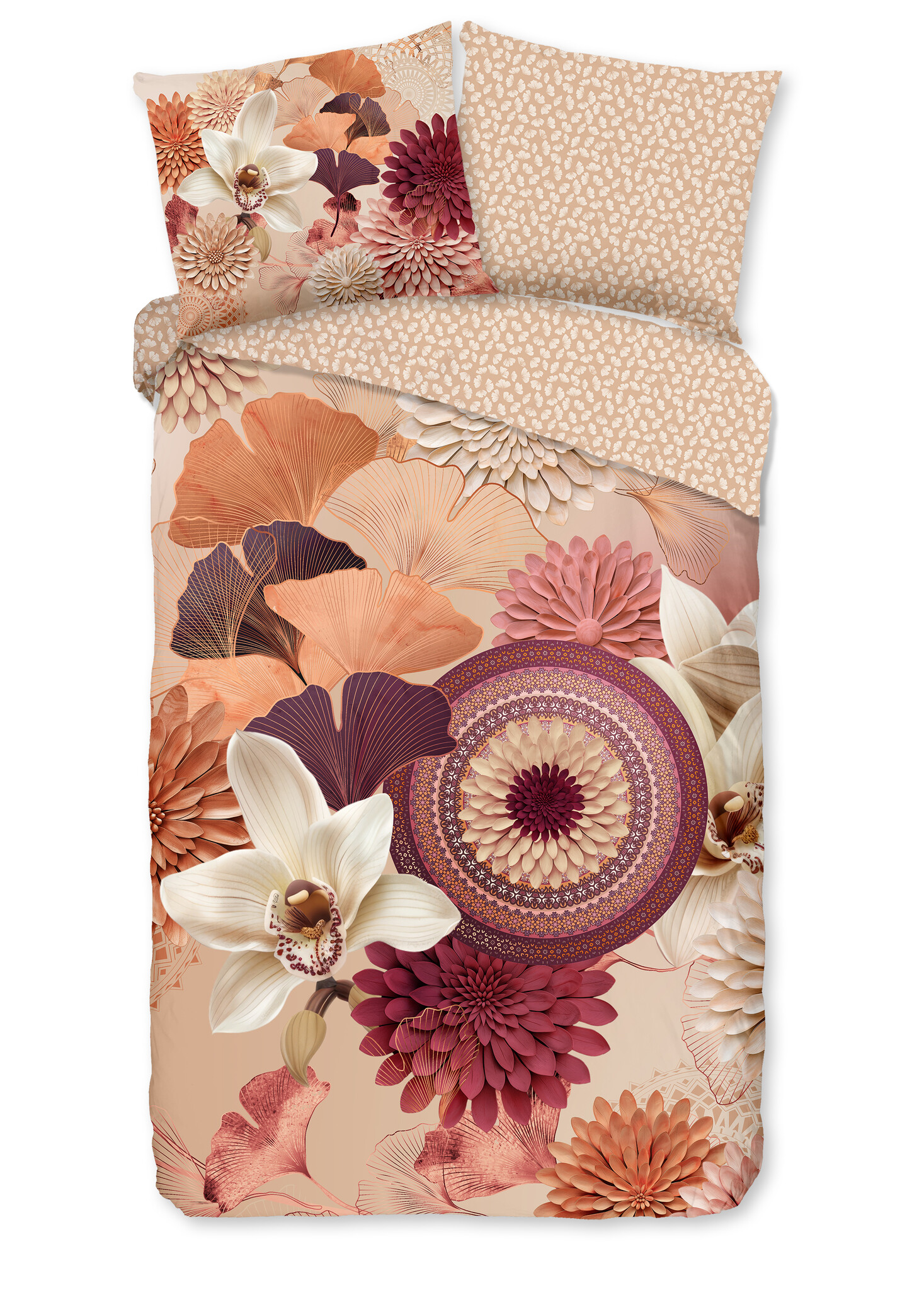 Het HIP dekbedovertrek Quente Zand straalt rust, warmte en verfijning uit. Het dessin combineert grote bloemen, sierlijke bladeren en subtiele mandala-details in zachte zand-, crème- en rozetinten. De harmonieuze kleuren zorgen voor een elegante en uitnodigende sfeer in de slaapkamer. Dit model past perfect binnen de collecties zand dekbedovertrek en katoensatijn dekbedovertrek en is ideaal voor liefhebbers van een warme, natuurlijke woonstijl.