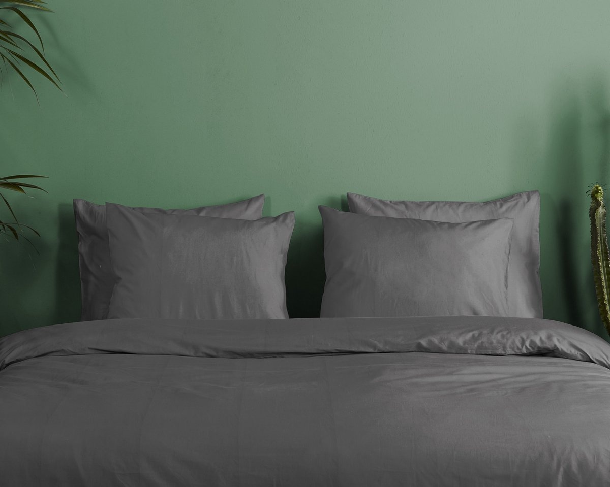HIP Dekbedovertrek Uni Antraciet - Donker Effen Katoensatijn