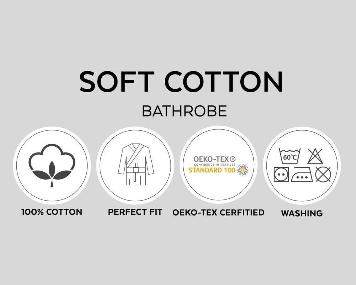 Soms wil je na een heerlijke warme douche nog even rondlopen in je badjas. Dat kan met deze unisex badjas, omdat de badjas is gemaakt van een mooie zachte katoen. Door het sterk vocht absorberende en goed ventilerende vermogen zorgt de katoenen badjas voor aangename verkoeling in de zomer. Maar ook in de winter zal je optimaal genieten met deze badjas, omdat de badjas warmteregulerend is en heerlijk zacht aanvoelt. Doordat de badjas fijn geweven is, voelt de badjas ook nog comfortabel aan. Verder is deze stof van nature slijtvast en duurzaam, zodat je extra lang kunt genieten van je nieuwe aanwinst.