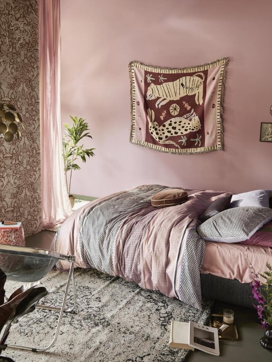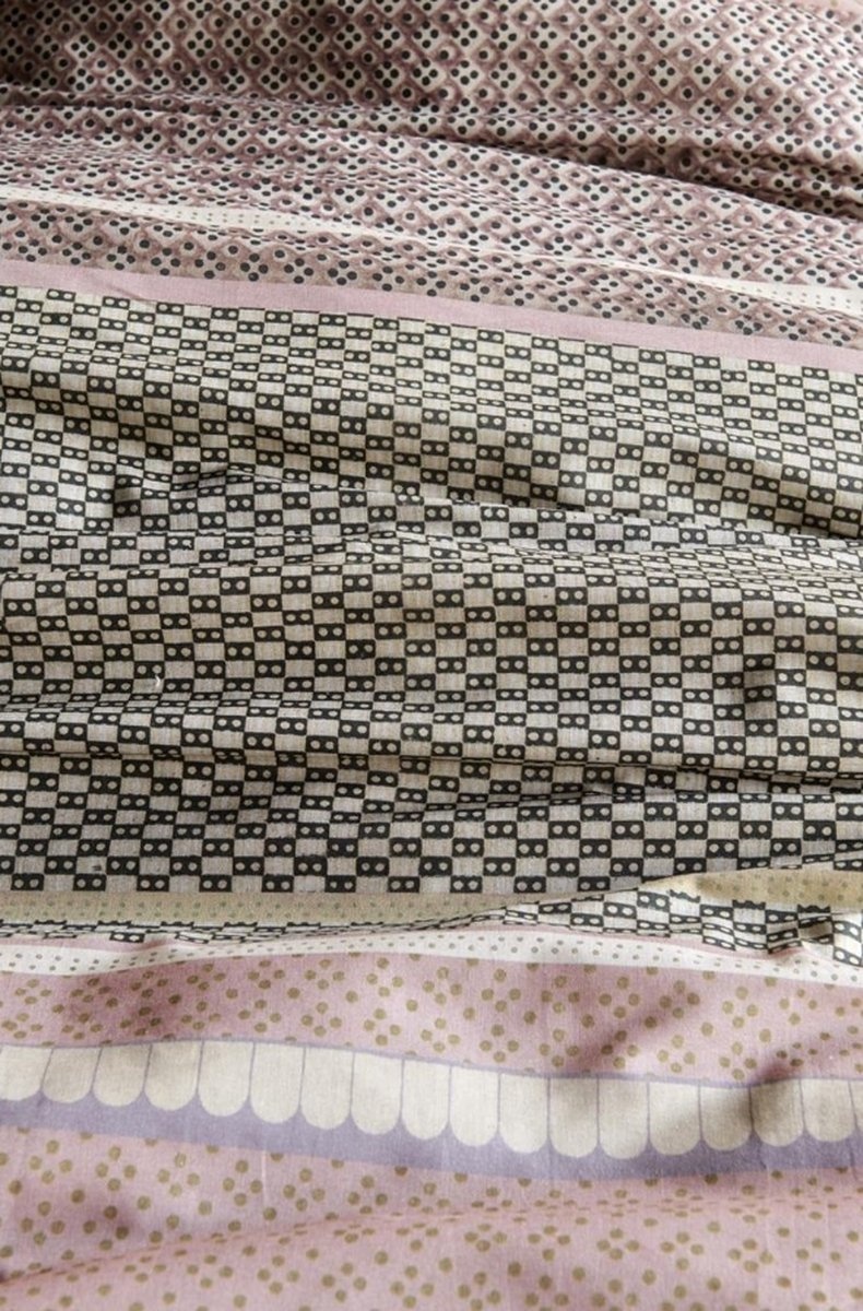 Dekbedovertrek Ivana bestaat uit een print versierd met meerdere lagen fascinerende grafische prints. Het overtrek combineert artisticiteit met functionaliteit en biedt een symfonie van patronen die inspiratie en creativiteit oproepen. De achterkant van het overtrek heeft een effen lichtroze kleur. Het dekbedovertrek is verpakt in een mooie stoffen tas gemaakt van dezelfde stof als het overtrek. De tas is niet alleen herbruikbaar, het biedt ook de mogelijkheid om de print van het overtrek te zien en te voelen.