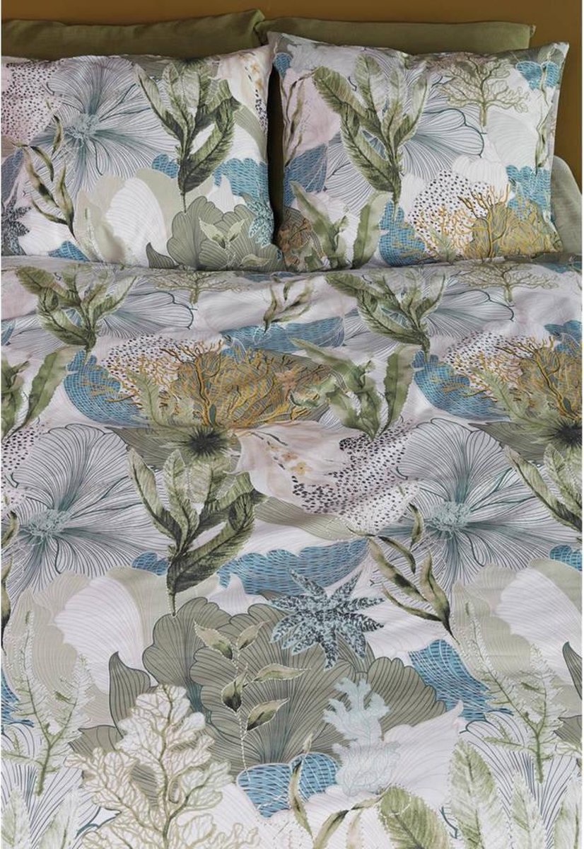 Dit dekbedovertrek is een sierlijk dessin geïnspireerd op de onderwaterwereld. Het dessin is opgebouwd uit verschillende koralen en onderwaterplanten in prachtige, frisse blauw- en groentinten. Maak je bed het middelpunt van de slaapkamer!