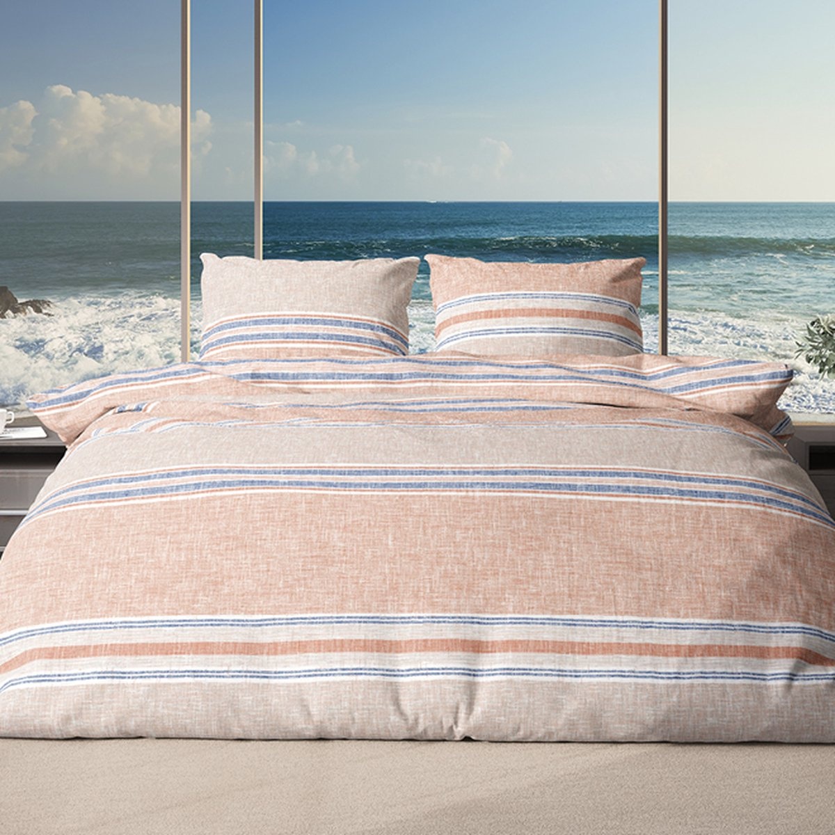 Percale Katoen Dekbedovertrek Stripes Zand