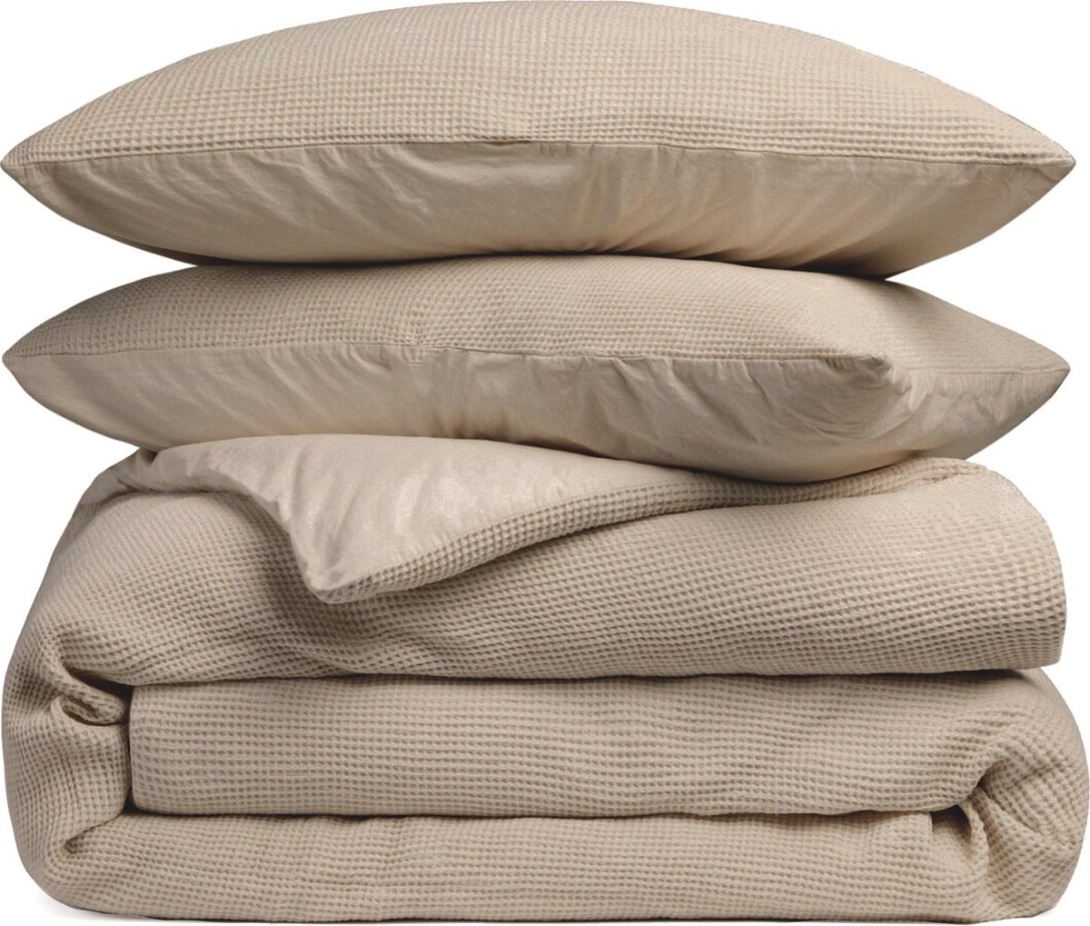 Dit luxe dekbedovertrek met een stijlvol en tijdloos ingeweven wafelpatroon creëert een aangename en fijne sfeer in je slaapkamer. De kussenslopen hebben hetzelfde wafelpatroon als het dekbedovertrek, wat voor een prachtig geheel zorgt. Maak je bed het middelpunt van de slaapkamer!