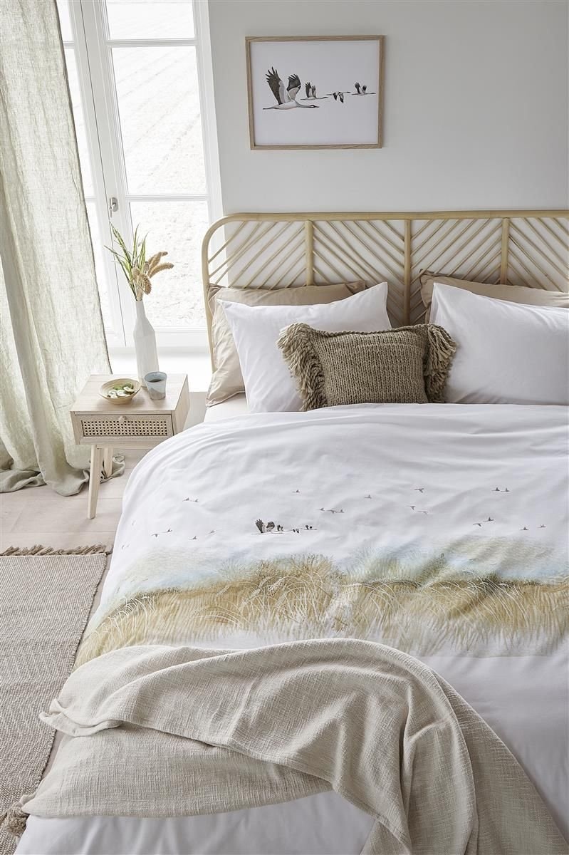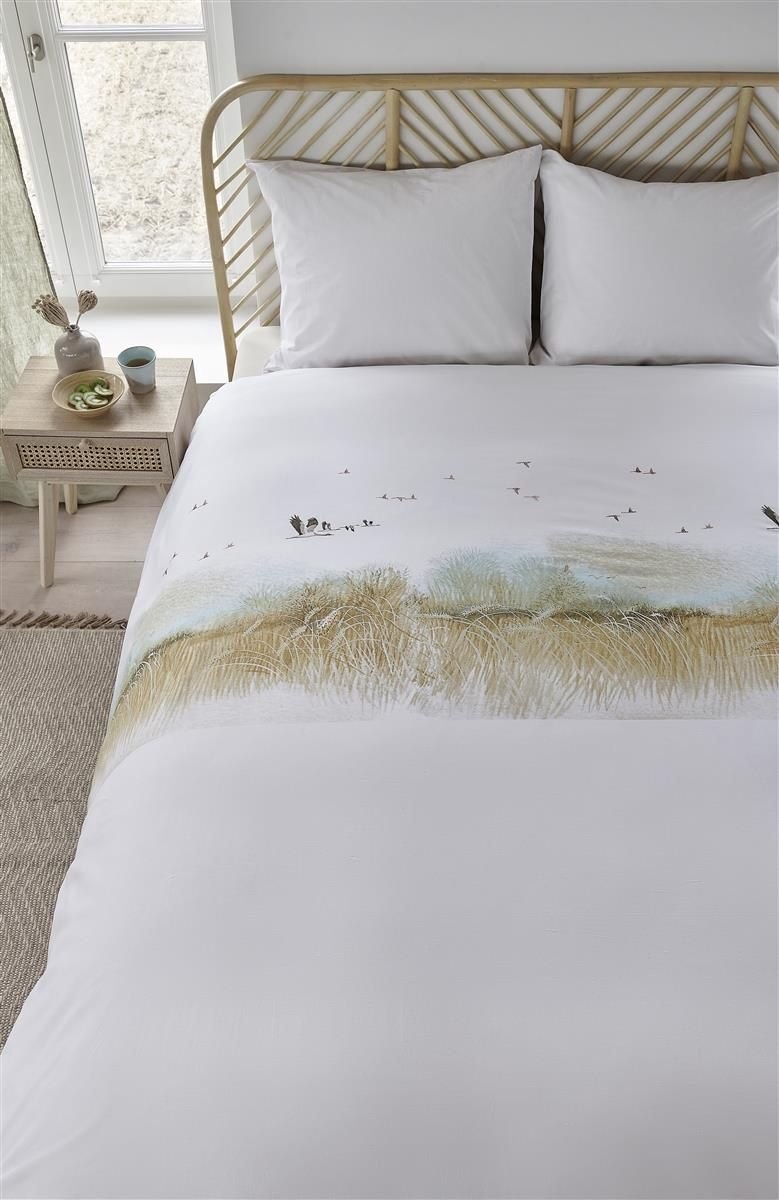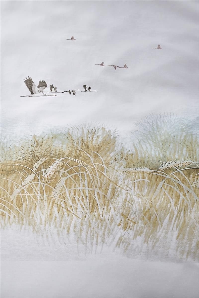 Dit prachtige dekbedovertrek creëert een aangename en fijne sfeer in je slaapkamer. Het dekbedovertrek brengt de natuur in je slaapkamer. Het dessin bestaat uit een baan met een prachtig getekend natuurlandschap met diverse trekvogels. De kleuren naturel, blauw en zand komen voor in het duinlandschap. Dit natuurtafereel is afgebeeld op een frisse witte ondergrond. De kussenslopen zijn wit van kleur. Het dessin is geïnspireerd op sfeervolle en landelijke tekeningen. Het dekbedovertrek maakt van je bed een echte eyecatcher!
