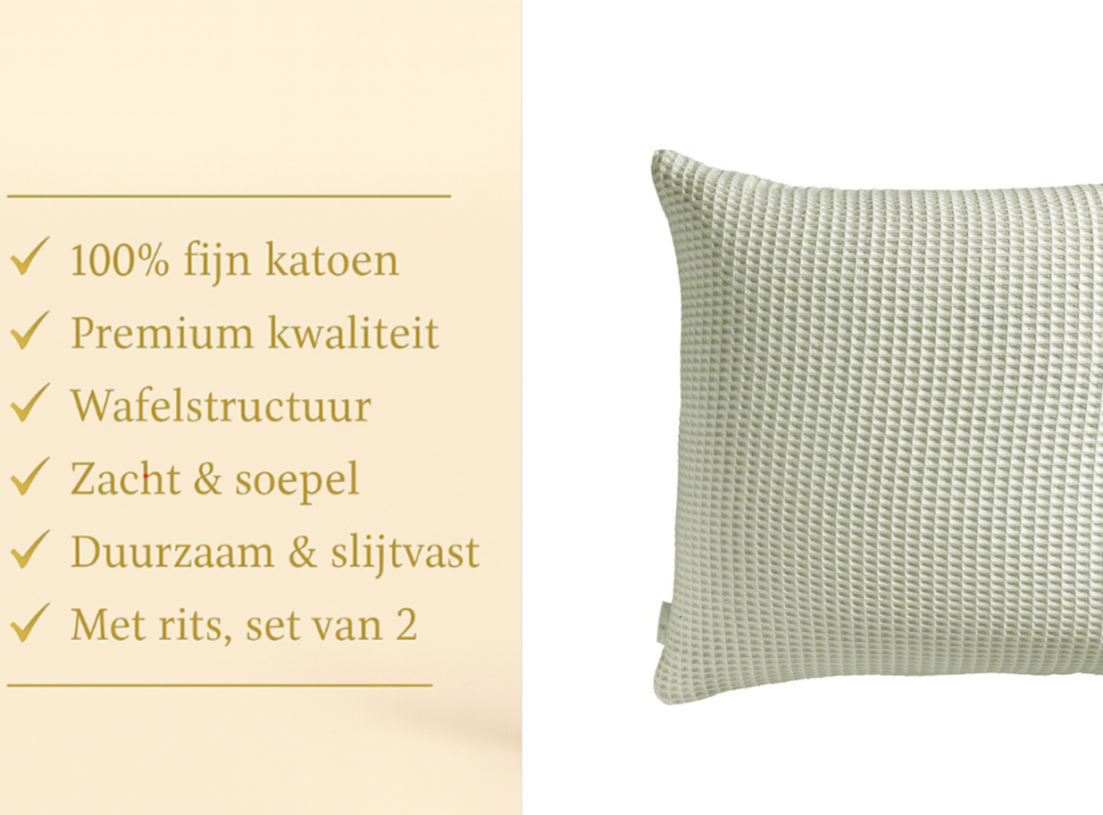 Breng sfeer in jouw huis met deze premium wafel kussenslopen. Helemaal ingespeeld op de trend van nu!