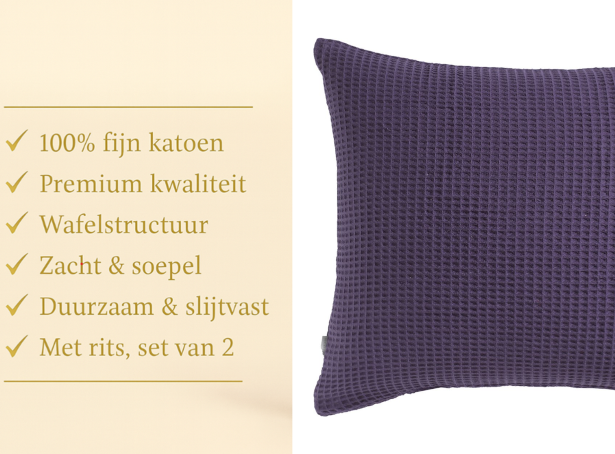 Kussenslopen Wafel (Set Van 2) Paars - 60x70 - Katoen
