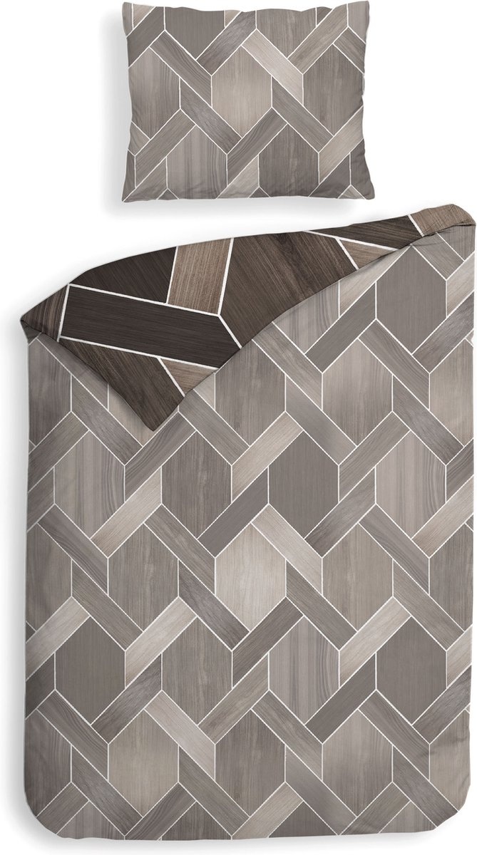 Op de voorkant van dit dekbedovertrek zie je een groots en gedurfd patroon, waar dikke lijnen in grijsgroen samenkomen om een eigentijdse en kunstzinnige vorm te creëren. Draai je het dekbedovertrek om dan word je begroet door hetzelfde patroon, maar dit keer met uitsluitend grijze lijnen en in een iets kleinere vorm. Dit moderne ontwerp straalt een gevoel van dynamiek en verfijning uit, waardoor het de perfecte keuze is voor liefhebbers van strakke en eigentijdse interieurs. Welke kant kies jij vandaag?