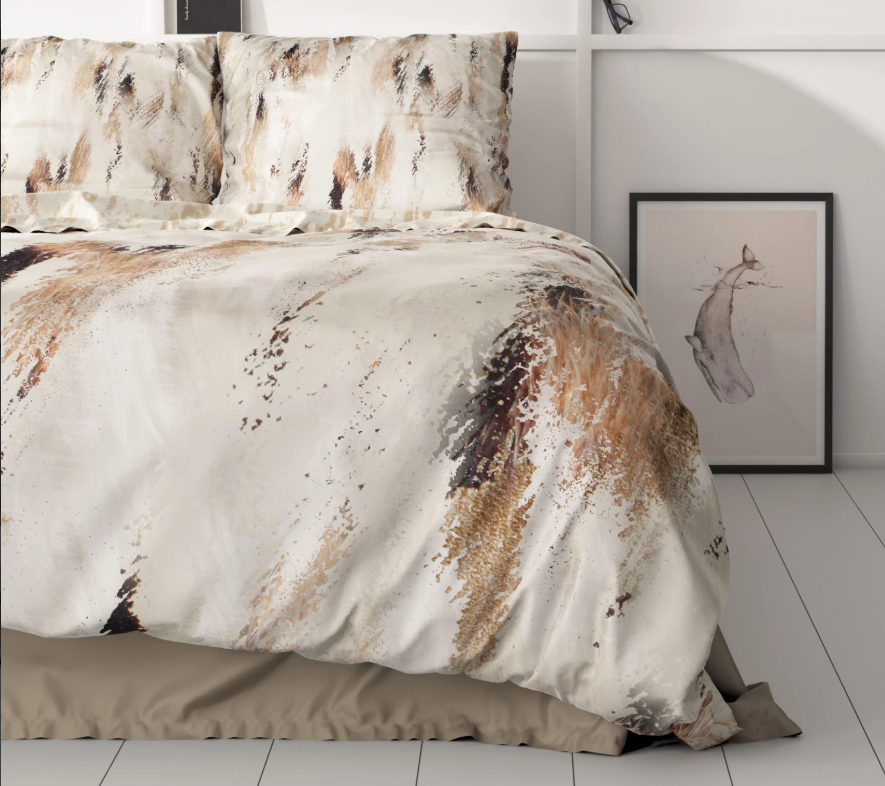 Het dekbedovertrek is vervaardigd uit 100% katoen/satijn en is een ware kunstwerk voor op je bed. Katoen/satijn is geweven van extra langvezelig katoen. Dankzij de speciale weefstructuur heeft de stof een hogere draaddichtheid en krijgt het dekbedovertrek een chique glans en is lekker zacht en glad om op te liggen. Het fijne materiaal zorgt voor schitterende kleuren en een fijne oppervlaktetextuur.
