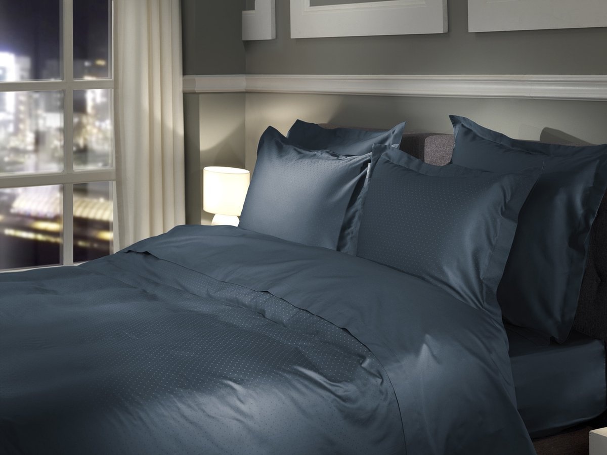 Dit luxe dekbedovertrek met een stijlvol ingeweven stippenpatroon creëert een chique en fijne sfeer in je slaapkamer. De kussenslopen hebben hetzelfde patroon als het dekbedovertrek en hebben een prachtige Oxford rand, wat voor een mooi geheel zorgt. Waan jezelf in een luxe hotel onder dit dekbedovertrek!