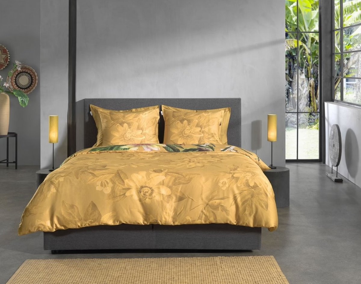 Het dekbedovertrek is vervaardigd uit 100% katoen/satijn en is een ware kunstwerk voor op je bed. Bij het weven zijn garen van extra langvezelig katoen gebruikt. Dankzij de speciale weefstructuur heeft de stof een hogere draaddichtheid en krijgt het dekbedovertrek een subtiele glans en is lekker zacht en glad om op te liggen. Het fijne materiaal zorgt voor schitterende kleuren en een fijne oppervlaktetextuur.