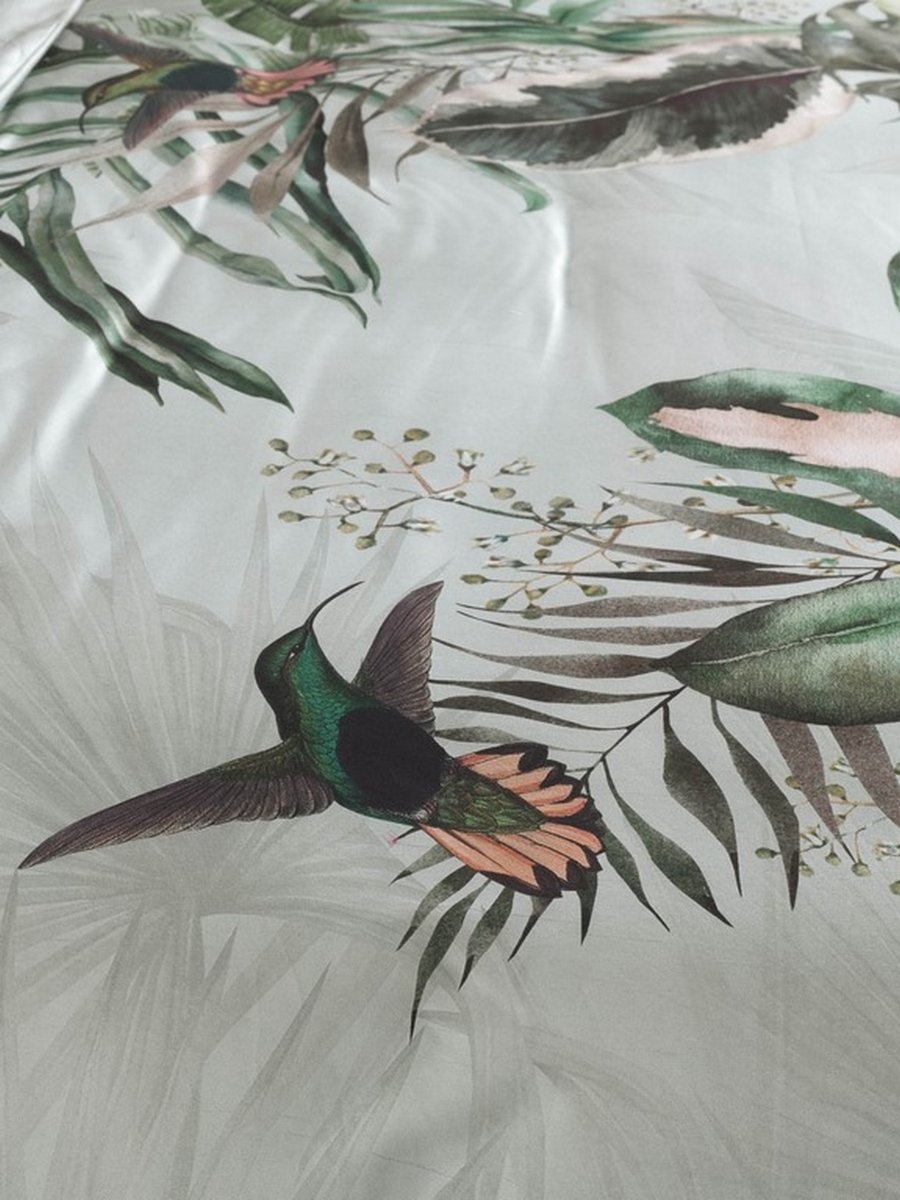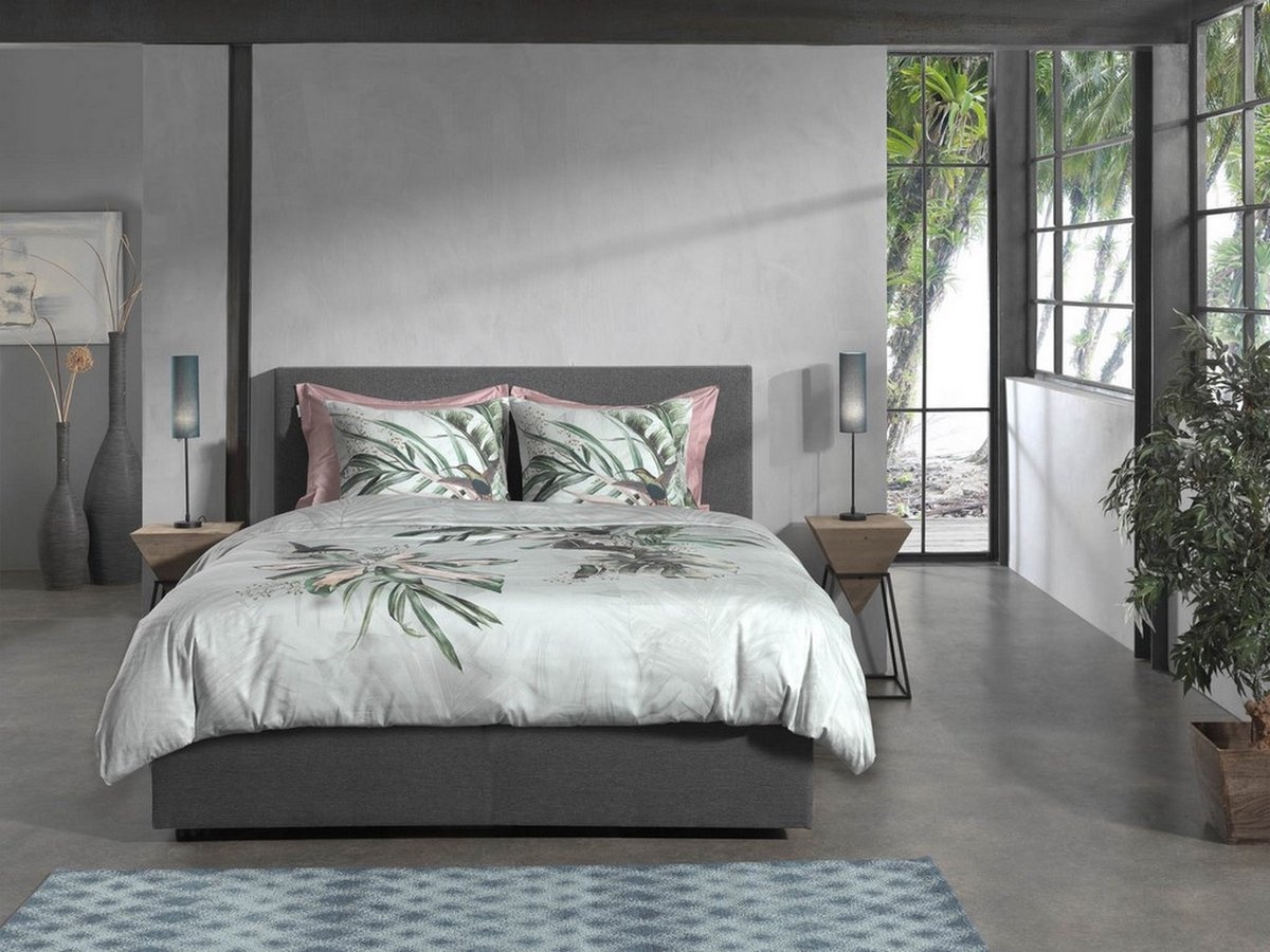 Het dekbedovertrek is vervaardigd uit 100% katoen/satijn en is een ware kunstwerk voor op je bed. Bij het weven zijn garen van extra langvezelig katoen gebruikt. Dankzij de speciale weefstructuur heeft de stof een hogere draaddichtheid en krijgt het dekbedovertrek een subtiele glans en is lekker zacht en glad om op te liggen. Het fijne materiaal zorgt voor schitterende kleuren en een fijne oppervlaktetextuur.