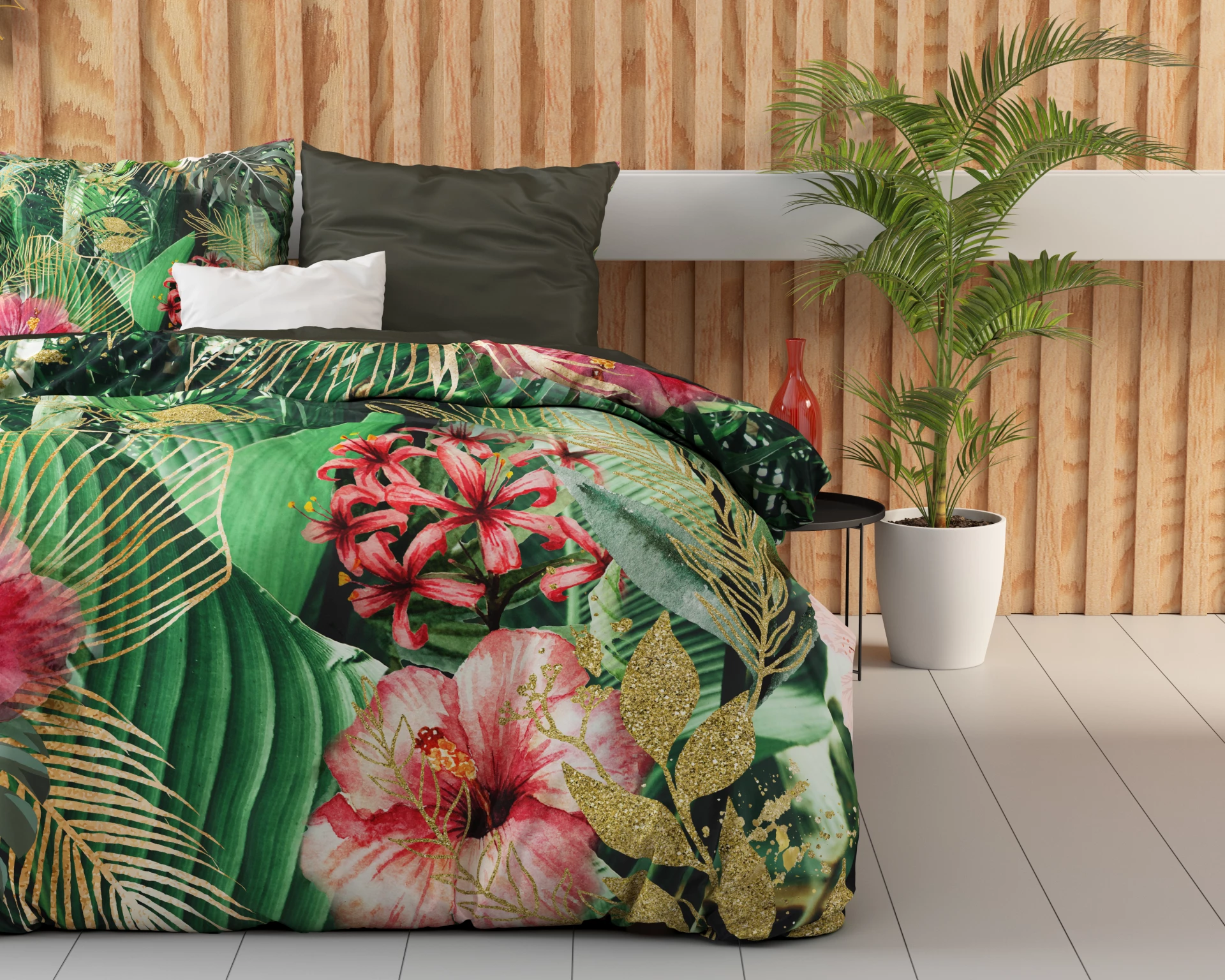 Het dekbedovertrek is vervaardigd uit 100% katoen/satijn en is een ware kunstwerk voor op je bed. Katoen/satijn is geweven van extra langvezelig katoen. Dankzij de speciale weefstructuur heeft de stof een hogere draaddichtheid en krijgt het dekbedovertrek een chique glans en is lekker zacht en glad om op te liggen. Het fijne materiaal zorgt voor schitterende kleuren en een fijne oppervlaktetextuur.
