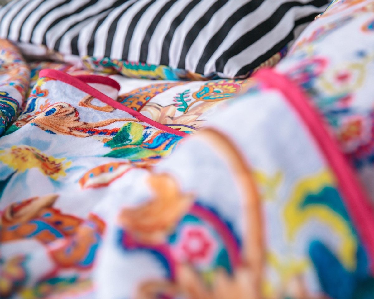 Het dekbedovertrek is vervaardigd uit 100% katoen/satijn en is een ware kunstwerk voor op je bed. Bij het weven zijn garen van extra langvezelig katoen gebruikt. Dankzij de speciale weefstructuur heeft de stof een hogere draaddichtheid en krijgt het dekbedovertrek een subtiele glans en is lekker zacht en glad om op te liggen. Het fijne materiaal zorgt voor schitterende kleuren en een fijne oppervlaktetextuur.