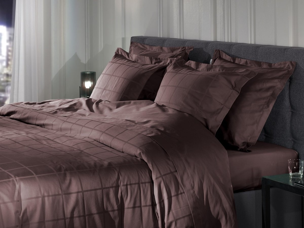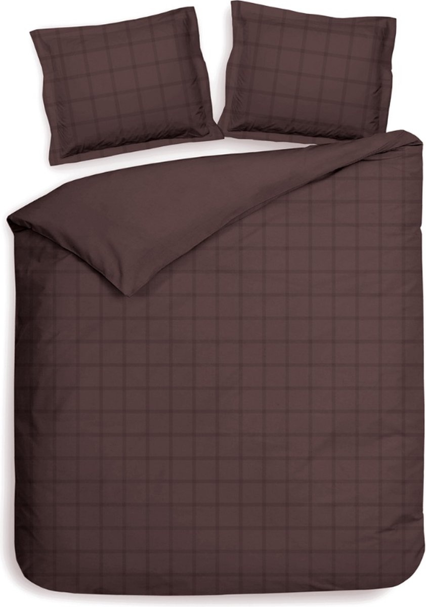 Katoen/satijn Dekbedovertrek Squares Bruin