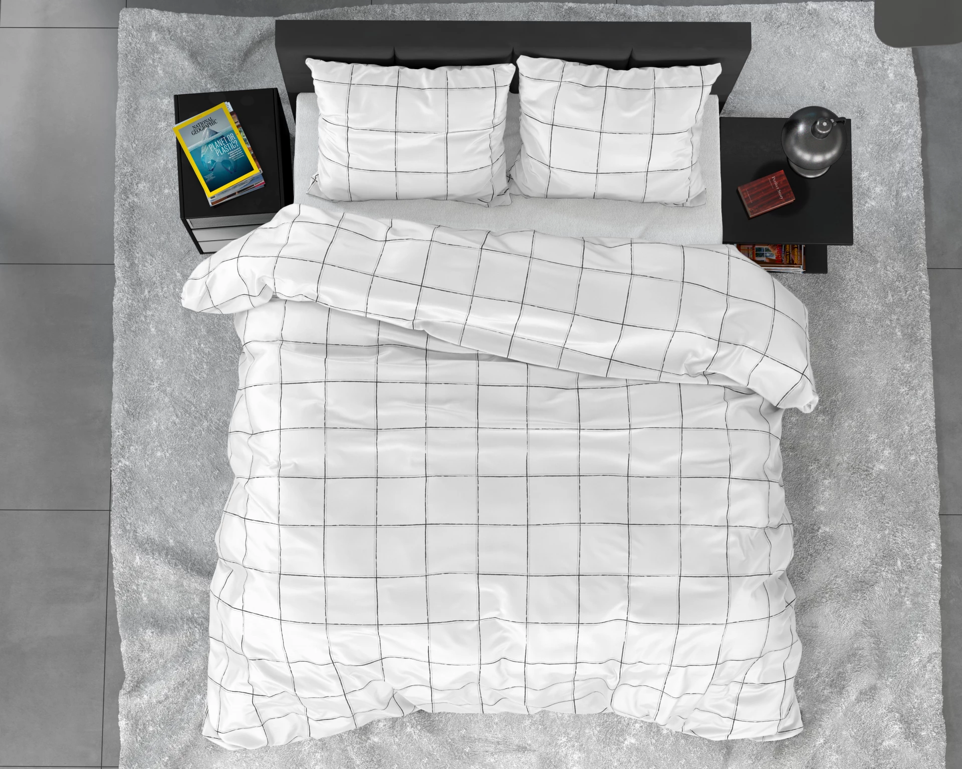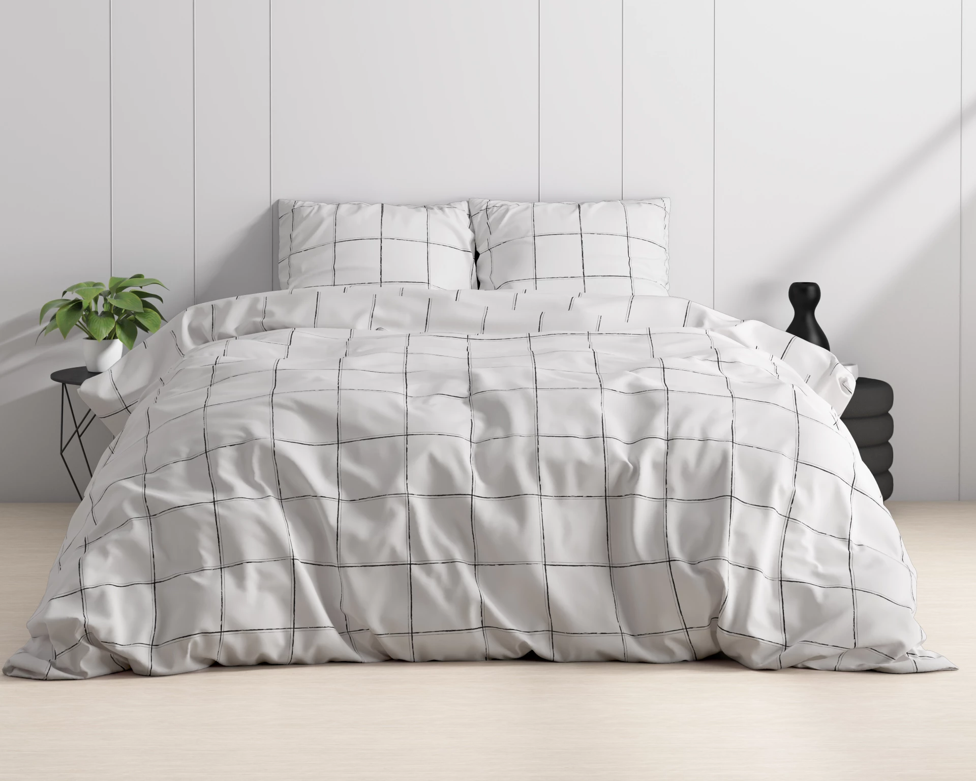 Dekbedovertrek Deep Check Wit - Katoensatijn