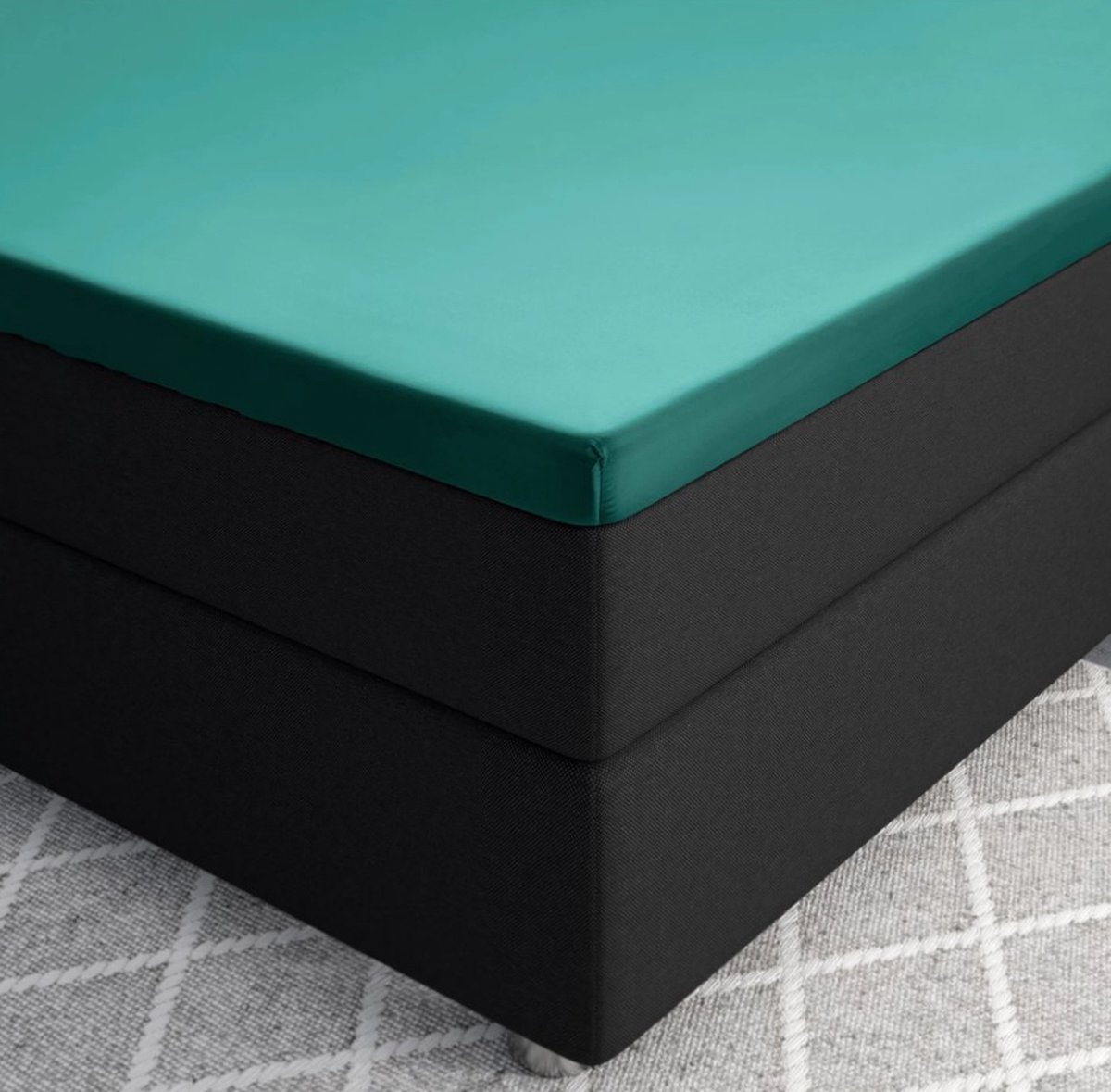 Het hoeslaken is beschikbaar in verschillende kleuren en maten.