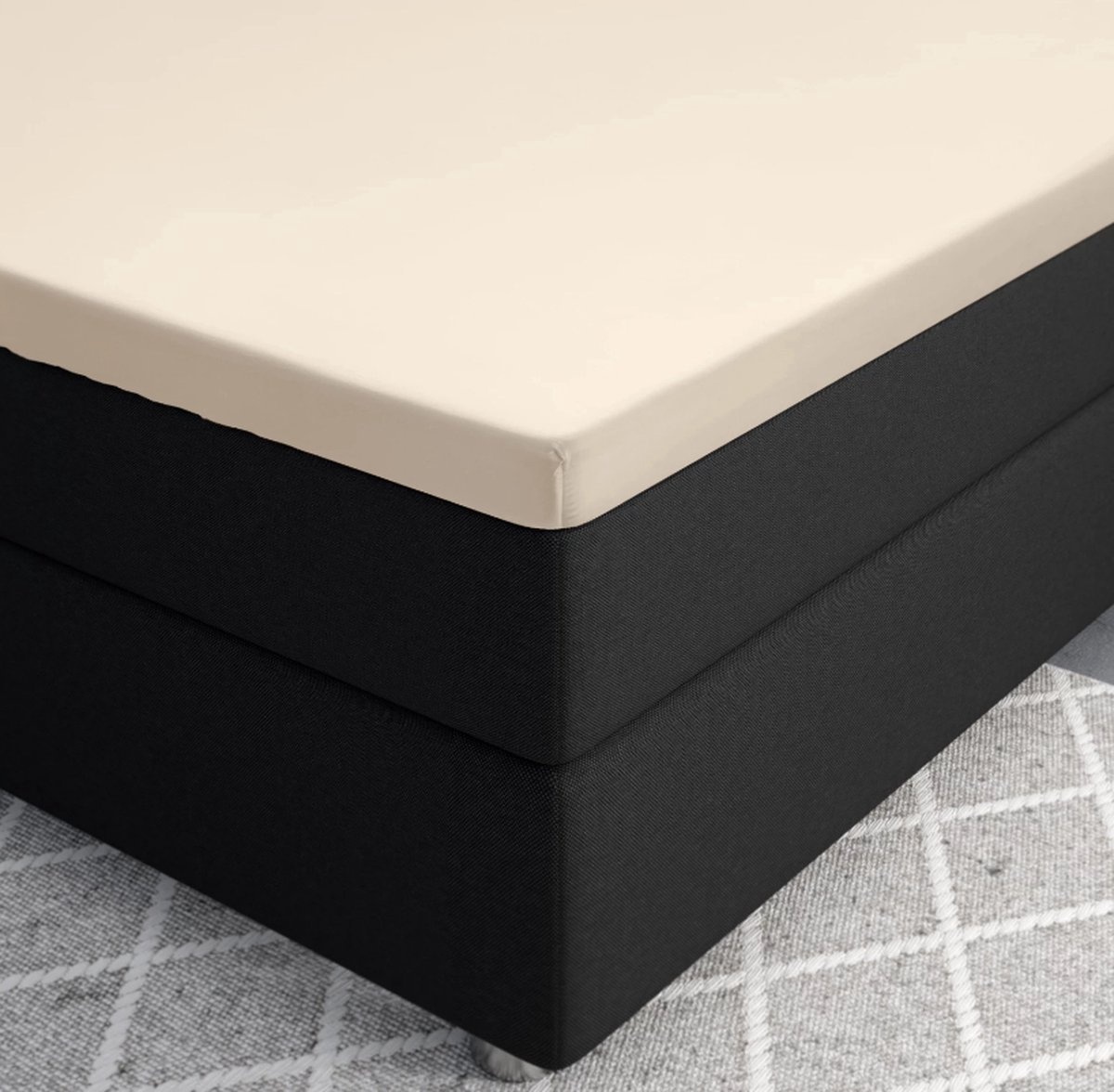 Het hoeslaken is beschikbaar in verschillende kleuren en maten.