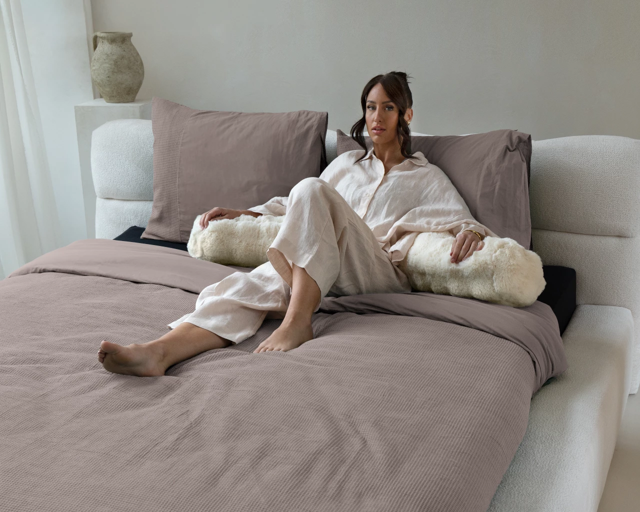 Dekbedovertrek Waffle Taupe - Perkal Katoen