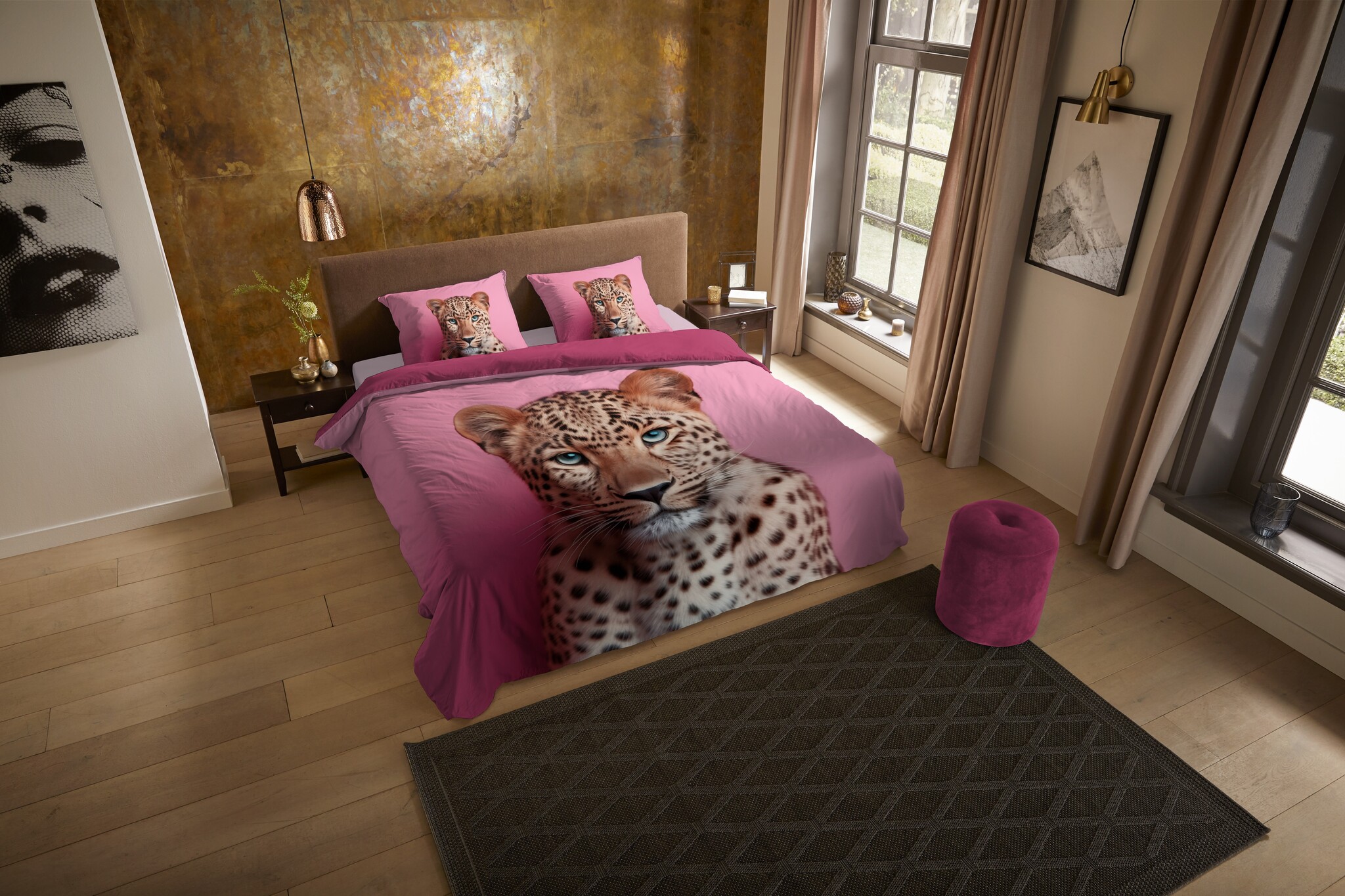 Het Pure Leona Roze dekbedovertrek is een echte blikvanger dankzij de indrukwekkende leopard print gecombineerd met een warme roze achtergrond. Dit ontwerp geeft de slaapkamer een luxe, modieuze uitstraling en zorgt direct voor sfeer.