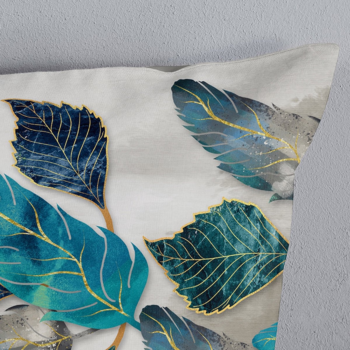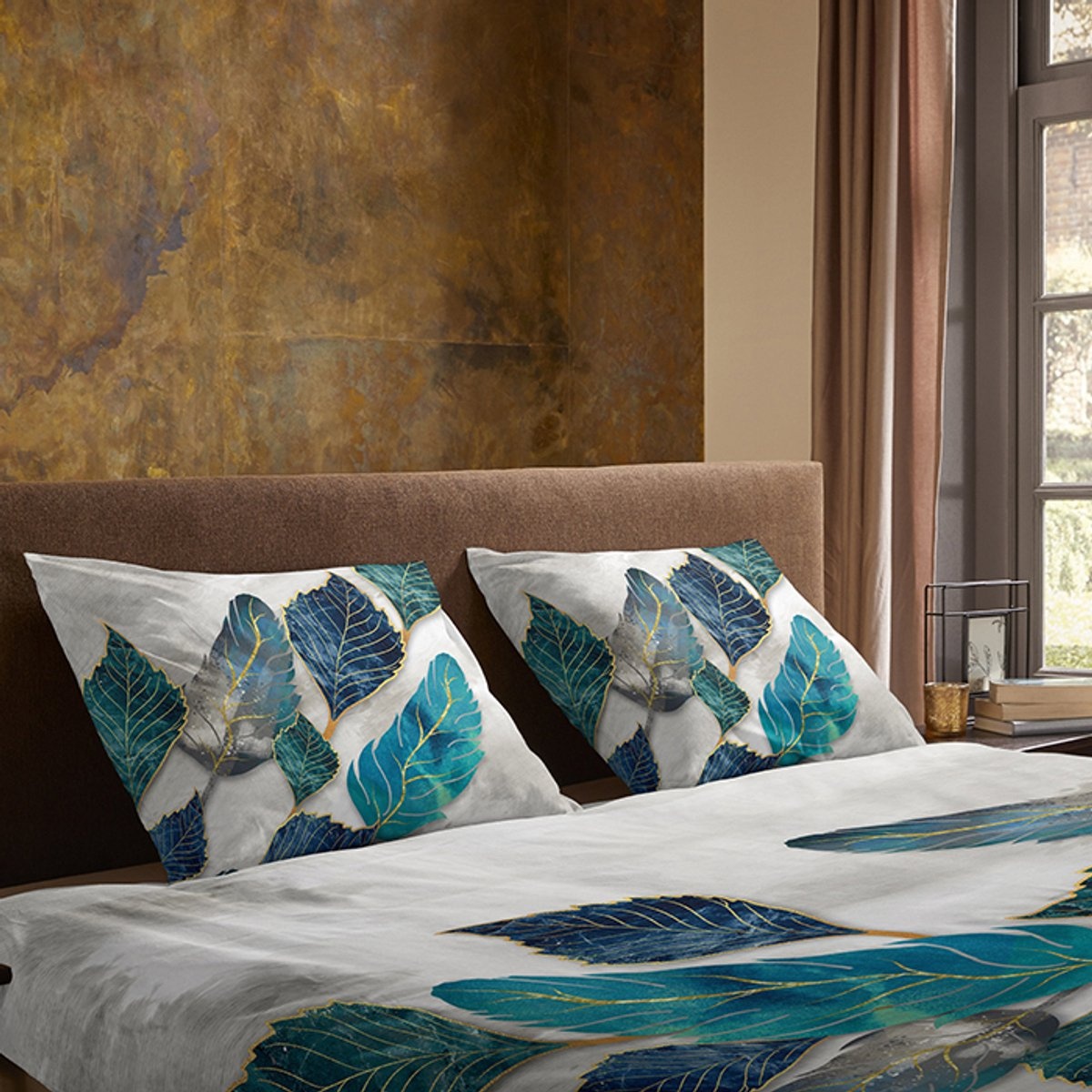 Modern bladmotief met petrol- en goudaccenten