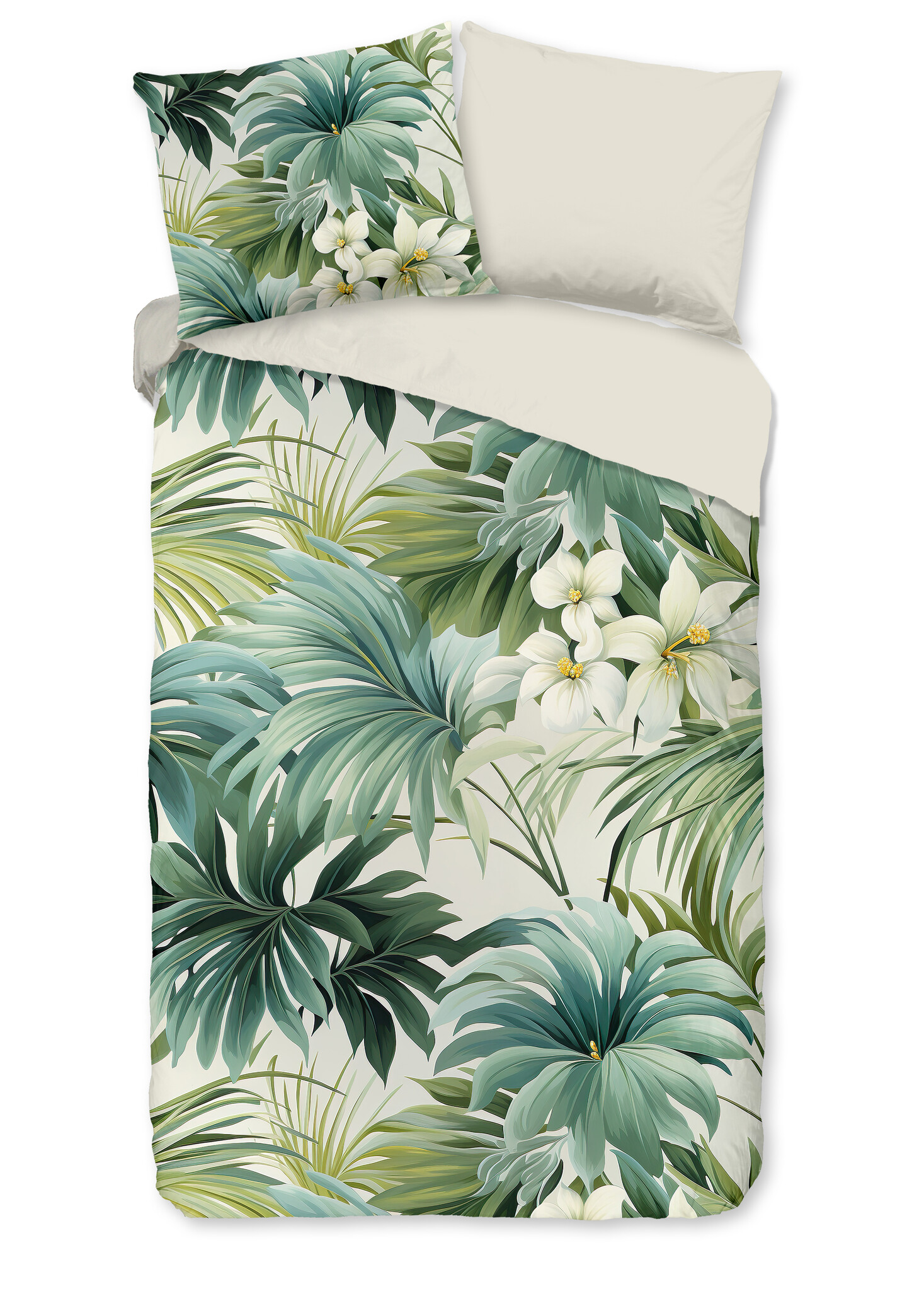 Het Pure Virna Groen dekbedovertrek brengt de sfeer van een weelderige jungle rechtstreeks naar je slaapkamer. Het botanische dessin met grote bladeren en zachte groentinten zorgt voor een frisse, natuurlijke uitstraling die rust en luxe perfect combineert.
