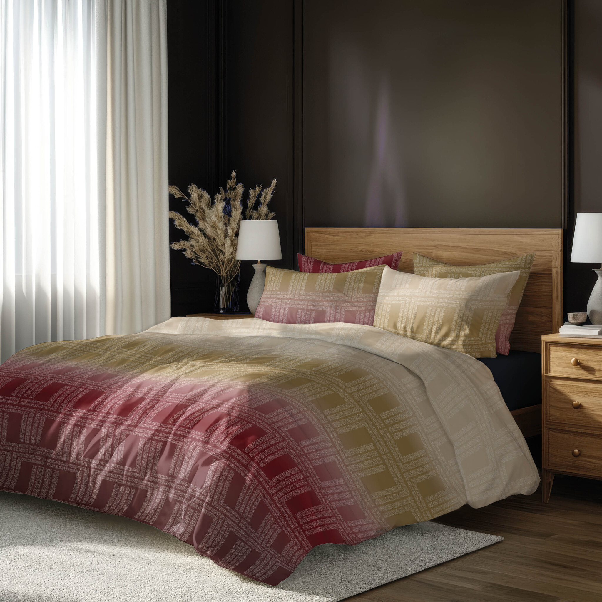 Dekbedovertrek Albenga Bordo/Goud - Katoensatijn