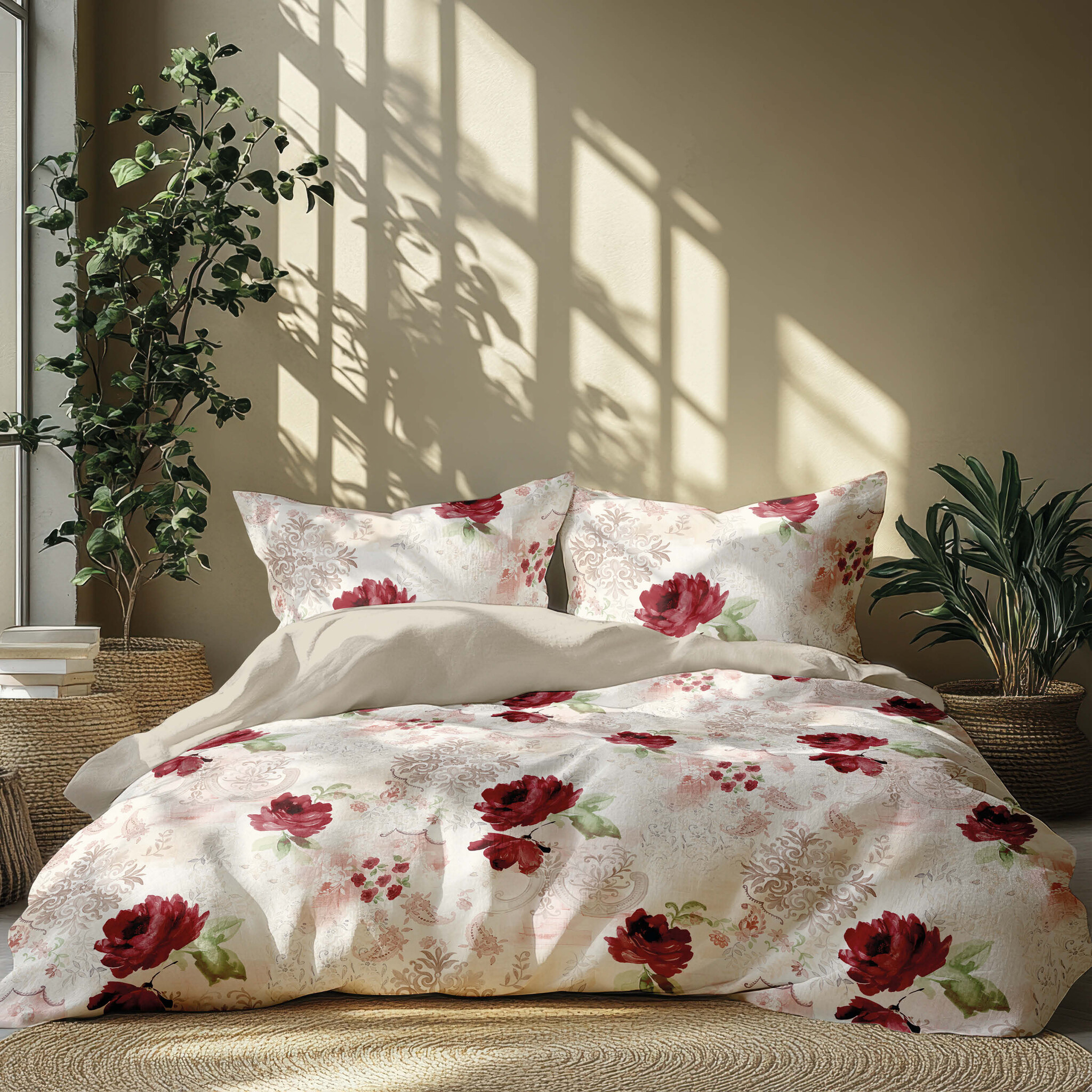 Dekbedovertrek Blossom Bordo - Katoensatijn