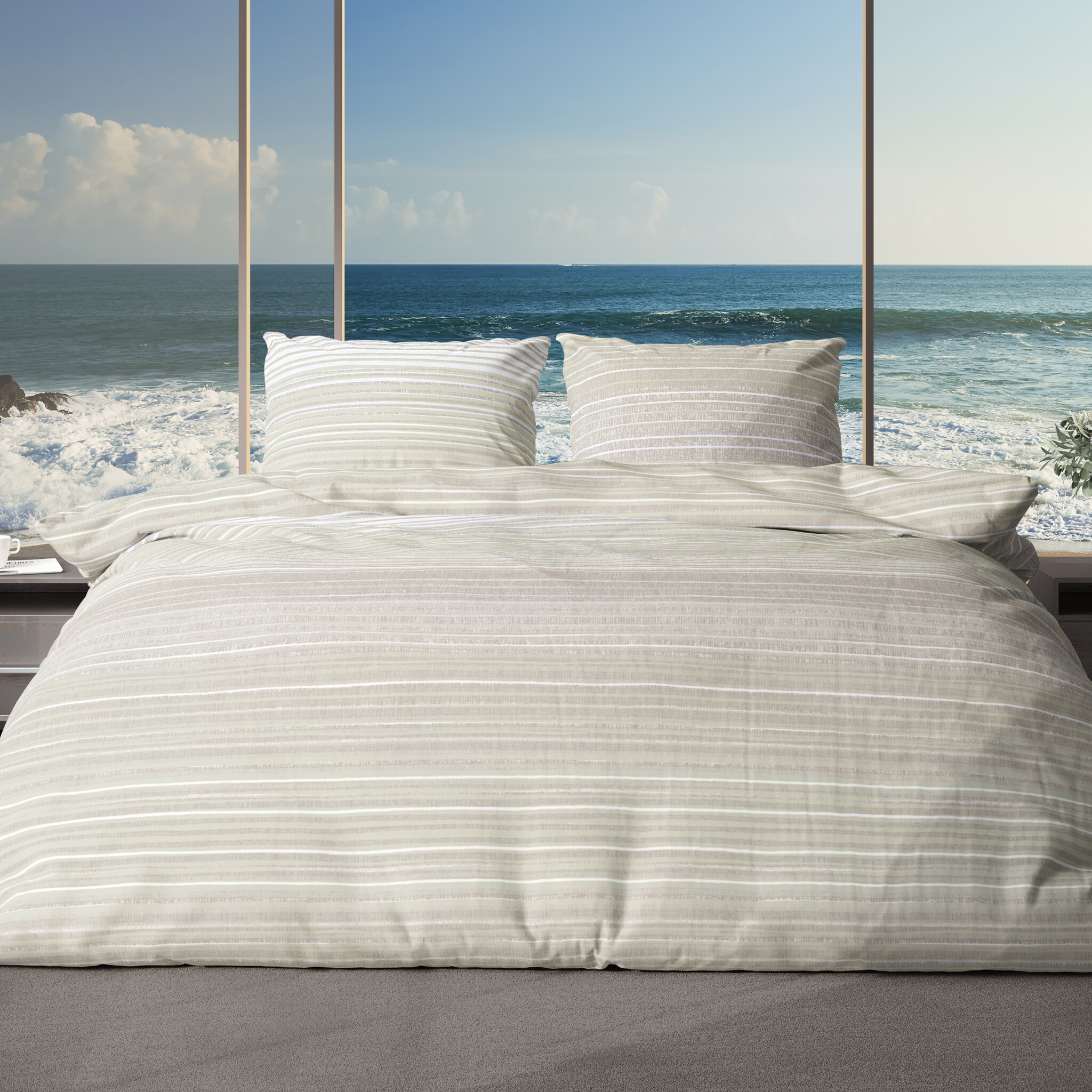 Het subtiele streeppatroon geeft het bed een rustige en moderne uitstraling.