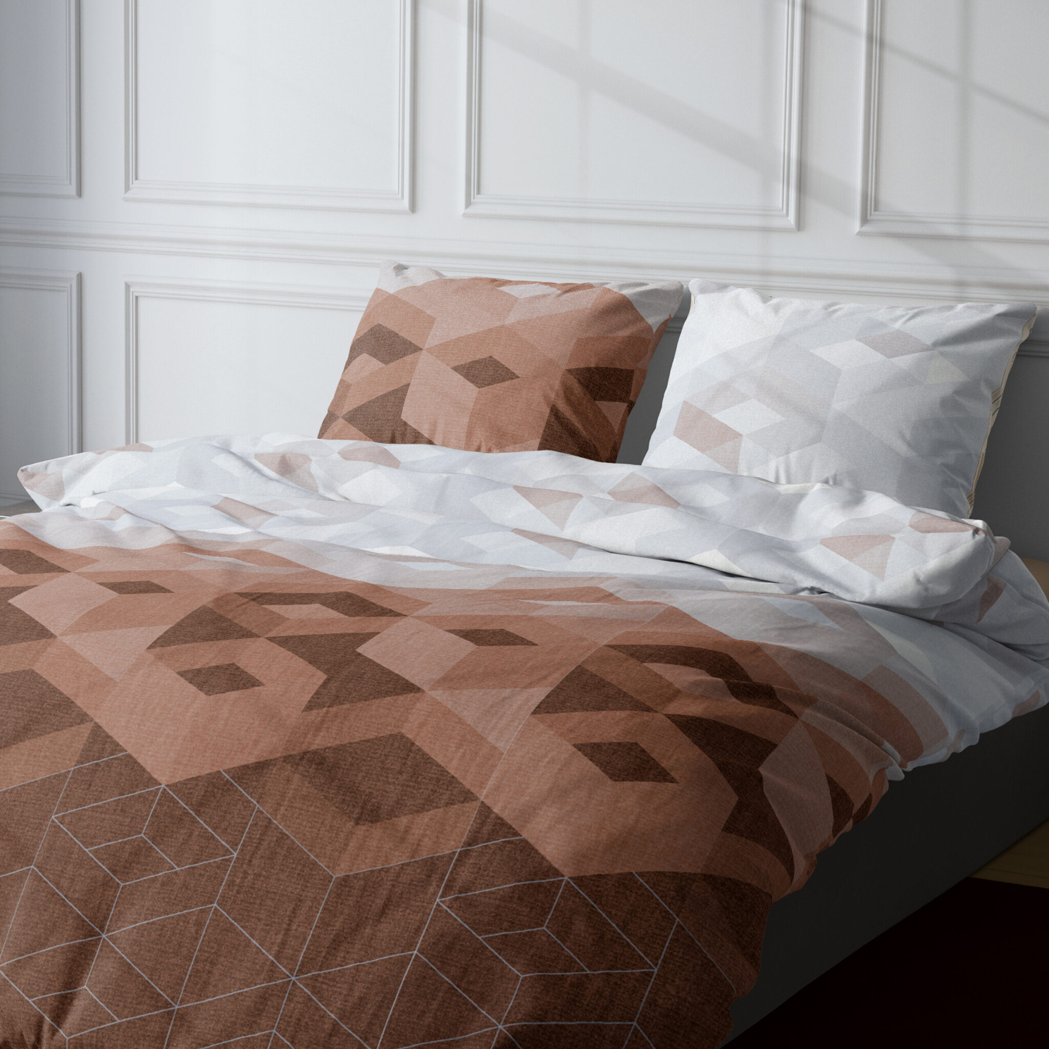 Dekbedovertrek Kiton Grijs/Mokka - Katoensatijn
