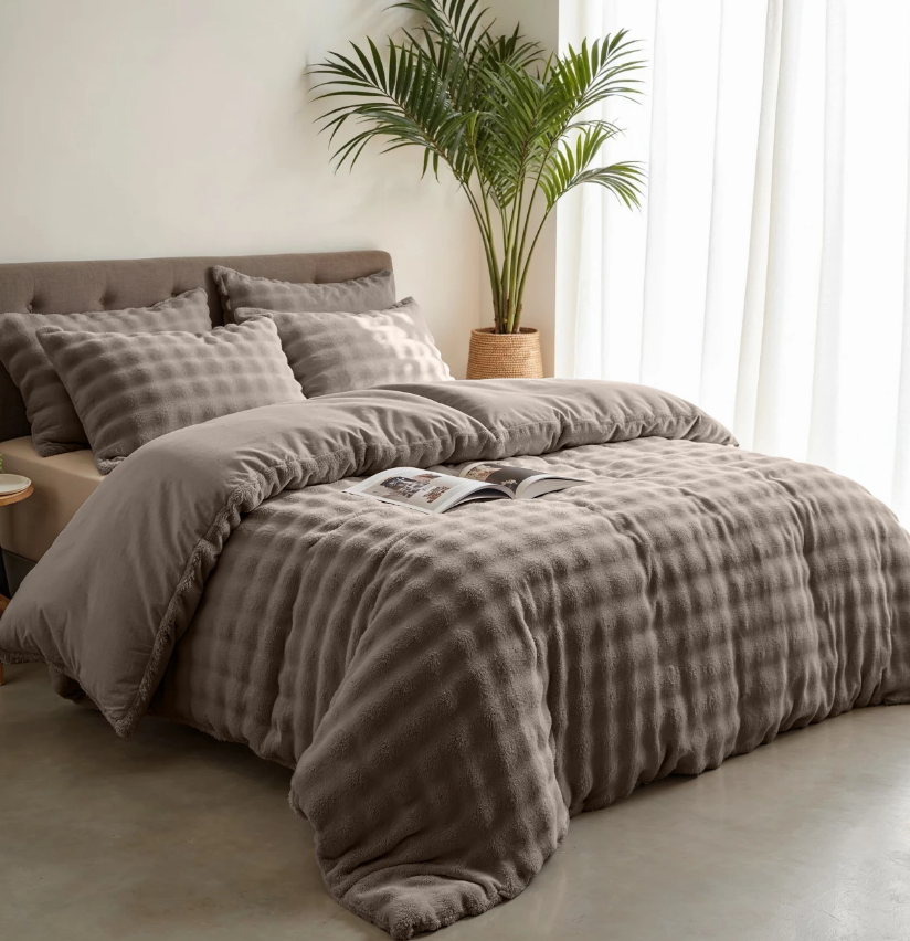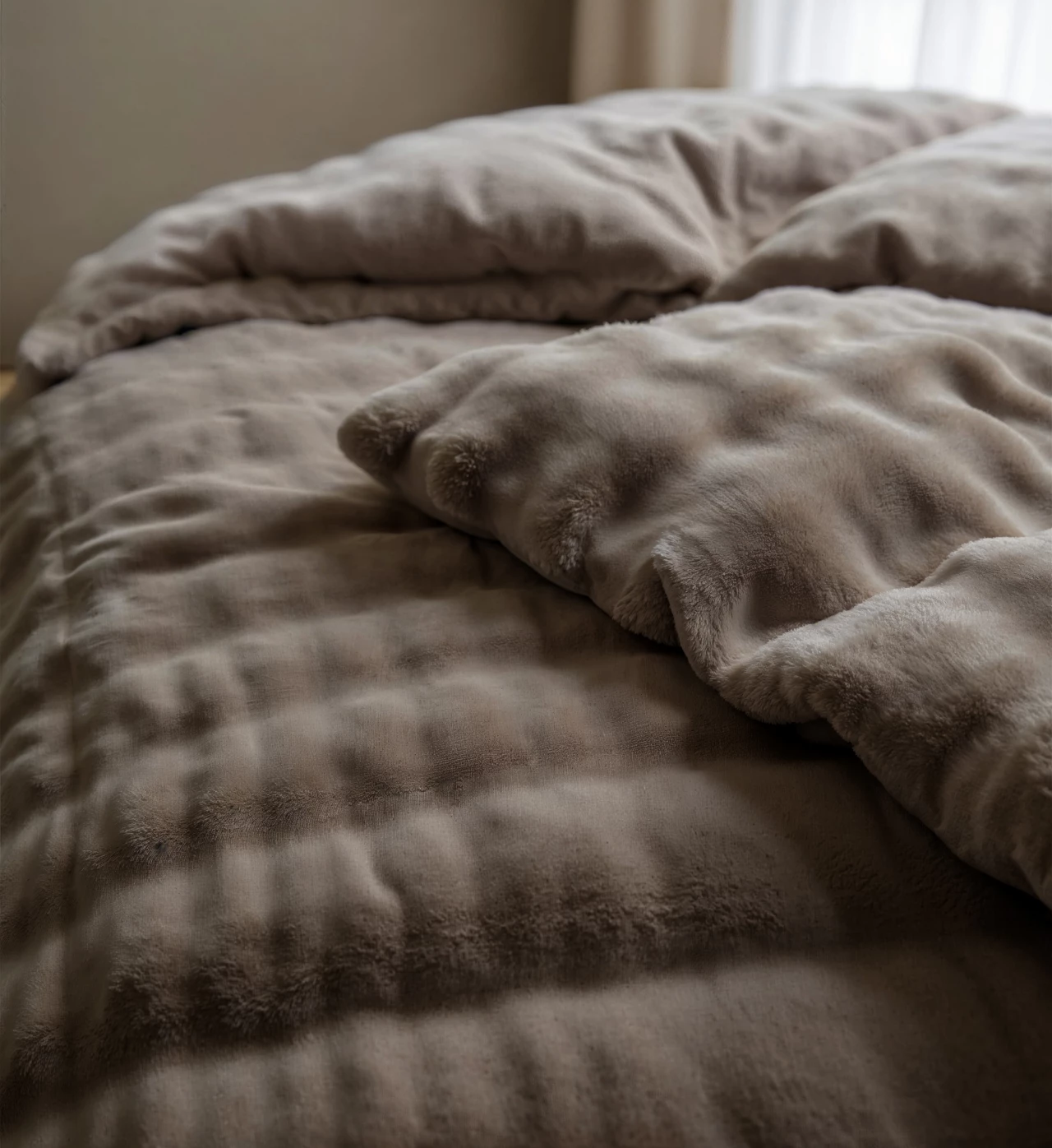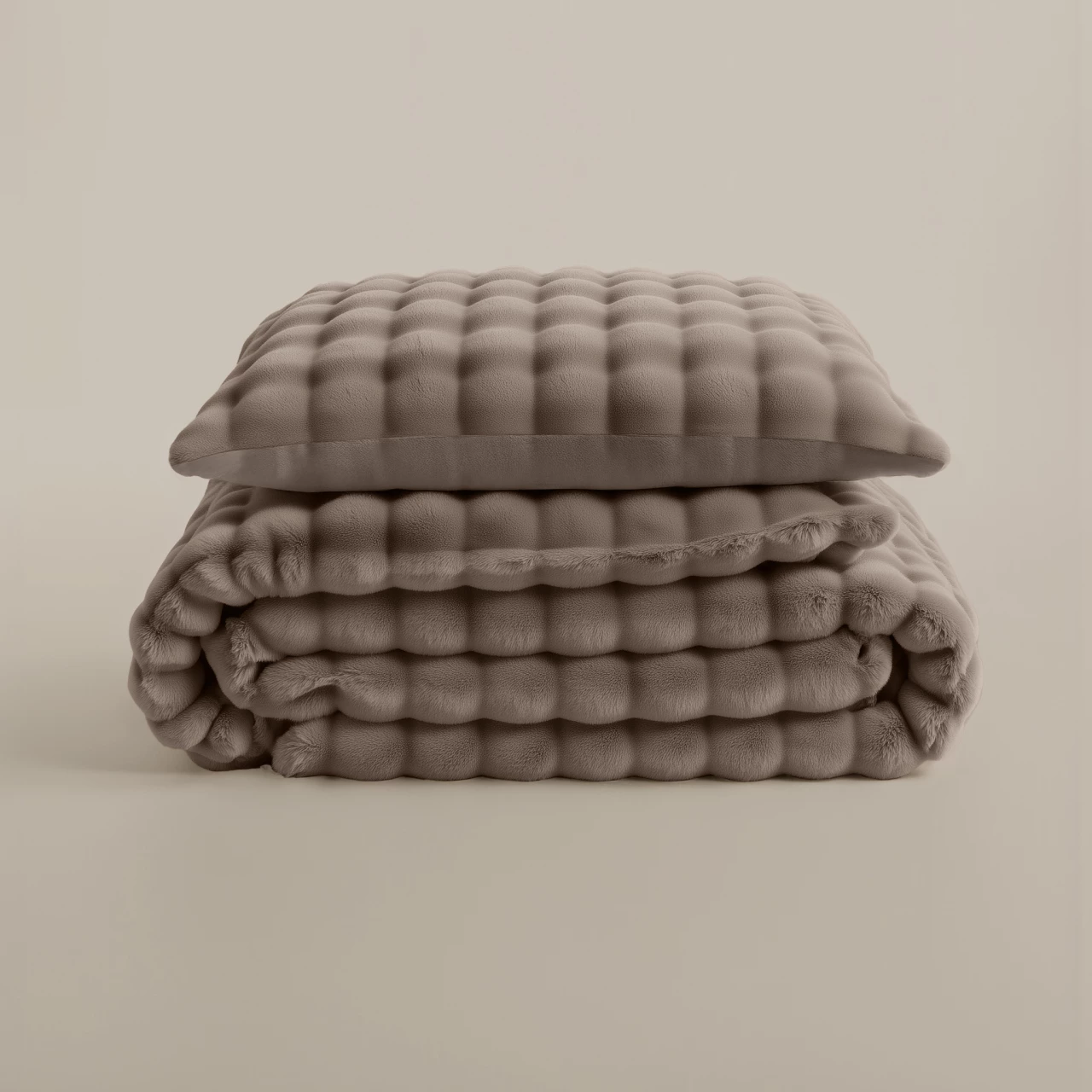 Sleeptime Dekbedovertrek Pompom Taupe - Flanel Fleece