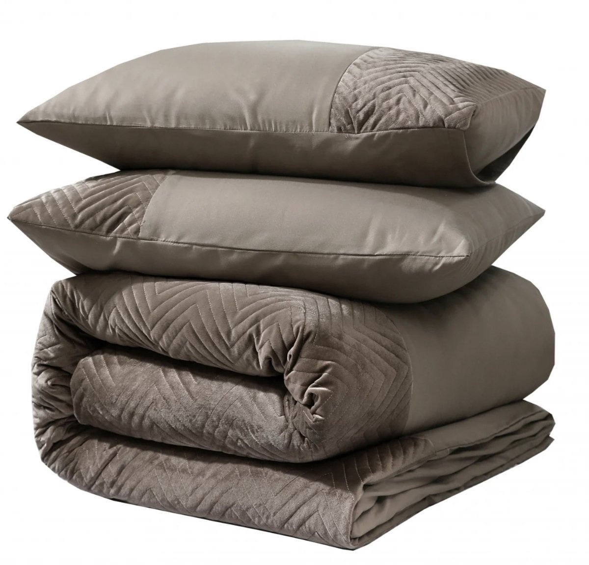 Sleeptime Crossline Taupe – luxe velvet dekbedovertrek met elegante structuur