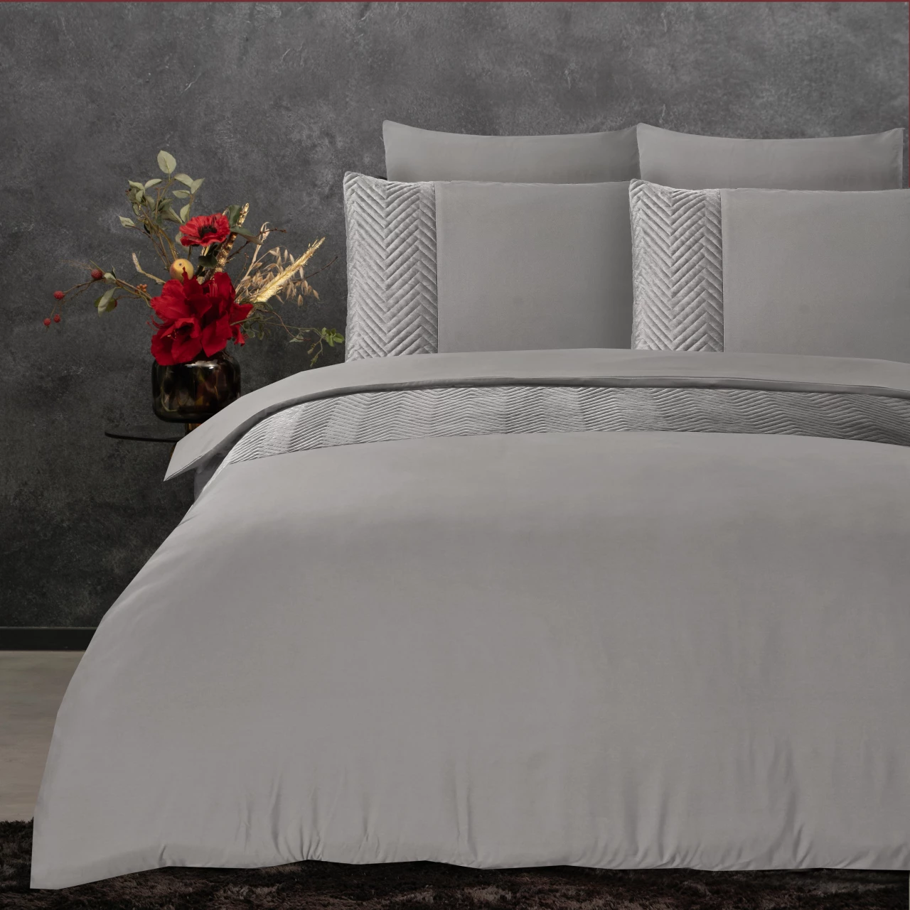 Dekbedovertrek Velvet Crossline Zand/Grijs - Microvezel