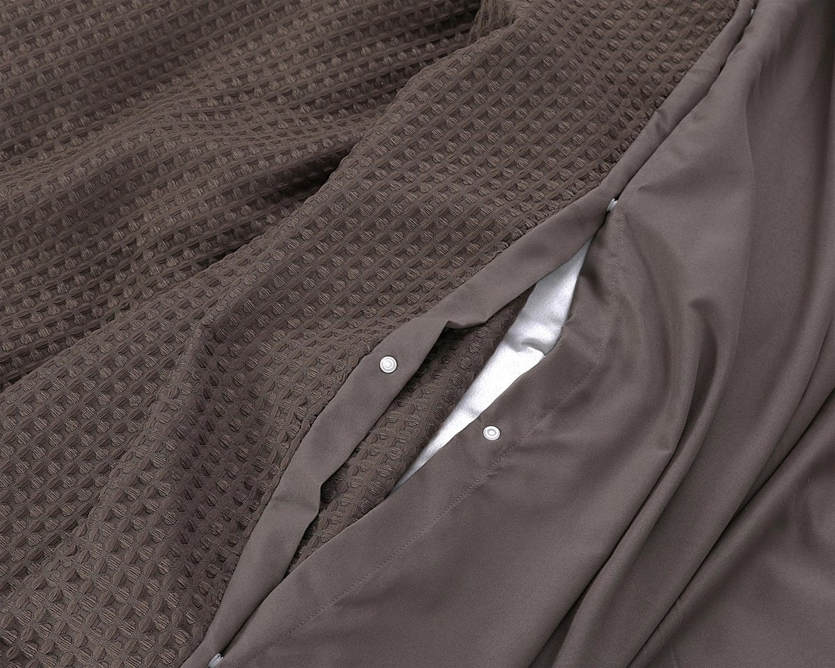 Het dekbedovertrek is aan de bovenkant gemaakt van extra zware kwaliteit waffel polyester. Dit materiaal is soepel en valt daardoor mooi op het bed. Het overtrek is daarnaast ook lekker zacht, sneldrogend en het kreukt nauwelijks. Hierdoor is dit dekbedovertrek fijn in gebruik. Het dekbedovertrek is daarnaast ademend, vochtabsorberend en luchtig, waardoor het dekbedovertrek bijdraagt aan jouw slaapcomfort.