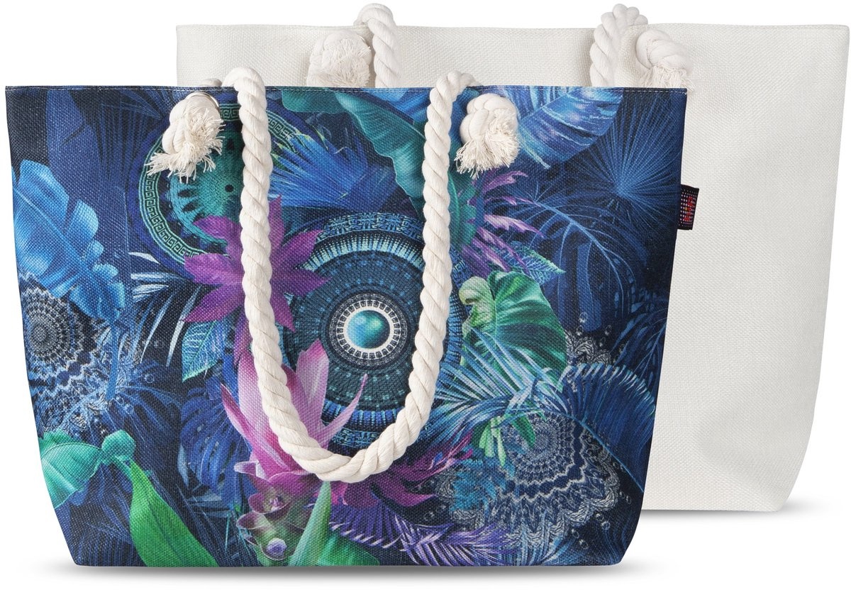 Deze strandtas is van de buitenkant gemaakt van 100% linnen, waardoor de tas een luxe uitstraling heeft. De strandtas heeft prachtige kleuren en is een ware blikvanger. De tas heeft een handige rits, waardoor de spullen er niet zomaar uit de tas zullen vallen.