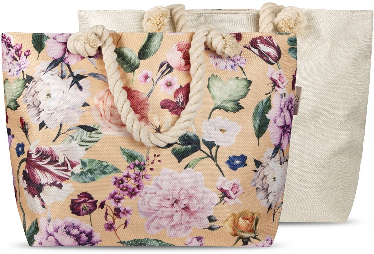 Deze strandtas is van de buitenkant gemaakt van 100% linnen, waardoor de tas een luxe uitstraling heeft. De strandtas heeft prachtige kleuren en is een ware blikvanger. De tas heeft een handige rits, waardoor de spullen er niet zomaar uit de tas zullen vallen.