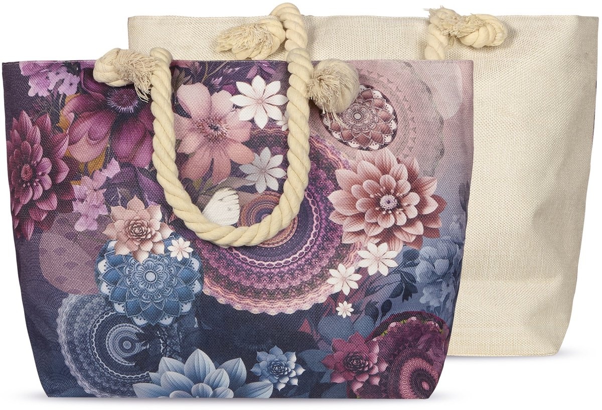 Deze strandtas is van de buitenkant gemaakt van 100% linnen, waardoor de tas een luxe uitstraling heeft. De strandtas heeft prachtige kleuren en is een ware blikvanger. De tas heeft een handige rits, waardoor de spullen er niet zomaar uit de tas zullen vallen.