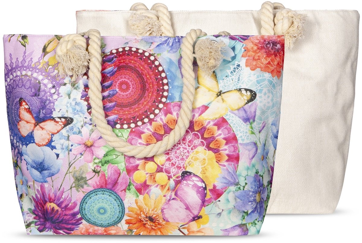 Neem deze prachtige strandtas/handtas mee om al je (strand)spullen in te doen! De tas is een ware blikvanger dankzij de stralende kleuren en uniek dessin!