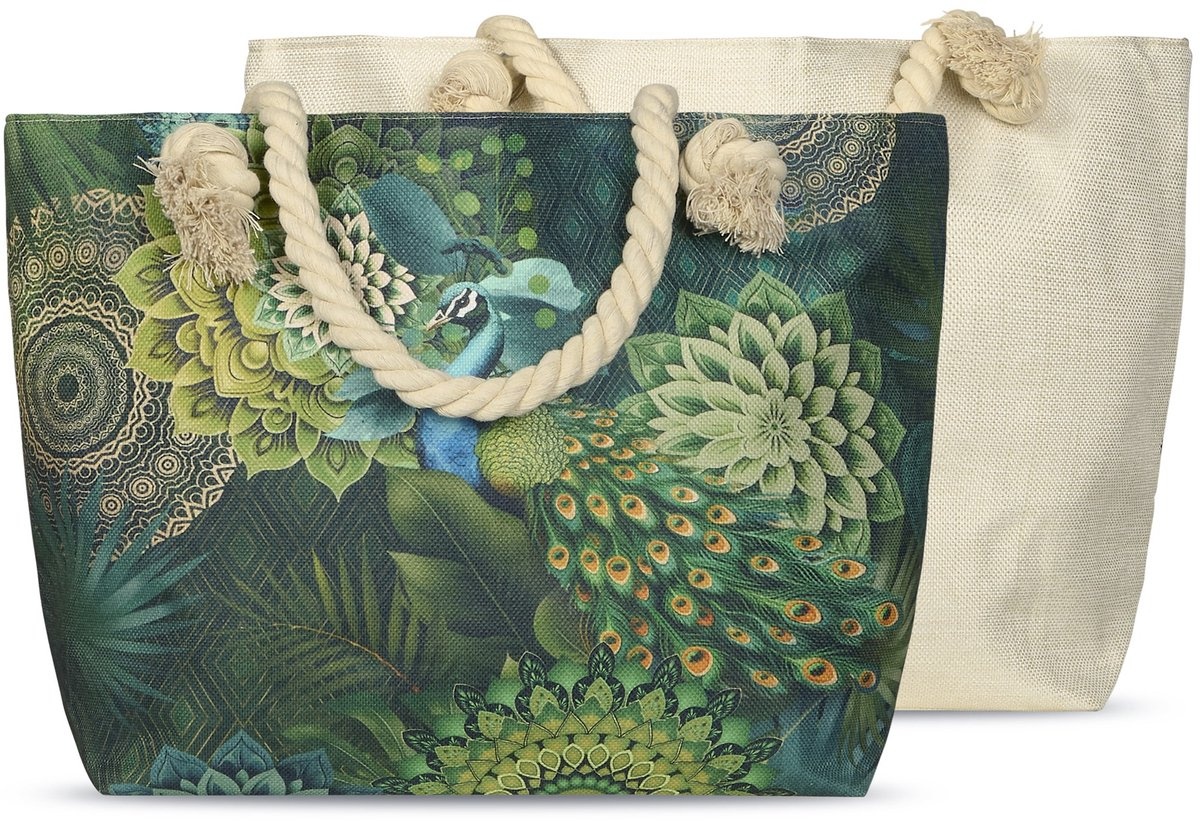 Deze strandtas is van de buitenkant gemaakt van 100% linnen, waardoor de tas een luxe uitstraling heeft. De strandtas heeft prachtige kleuren en is een ware blikvanger. De tas heeft een handige rits, waardoor de spullen er niet zomaar uit de tas zullen vallen.