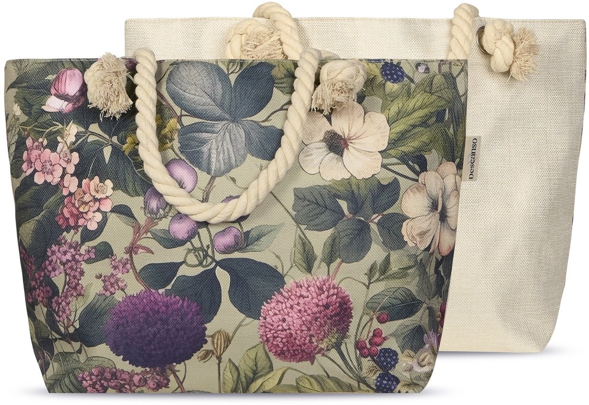 Deze strandtas is van de buitenkant gemaakt van 100% linnen, waardoor de tas een luxe uitstraling heeft. De strandtas heeft prachtige kleuren en is een ware blikvanger. De tas heeft een handige rits, waardoor de spullen er niet zomaar uit de tas zullen vallen.